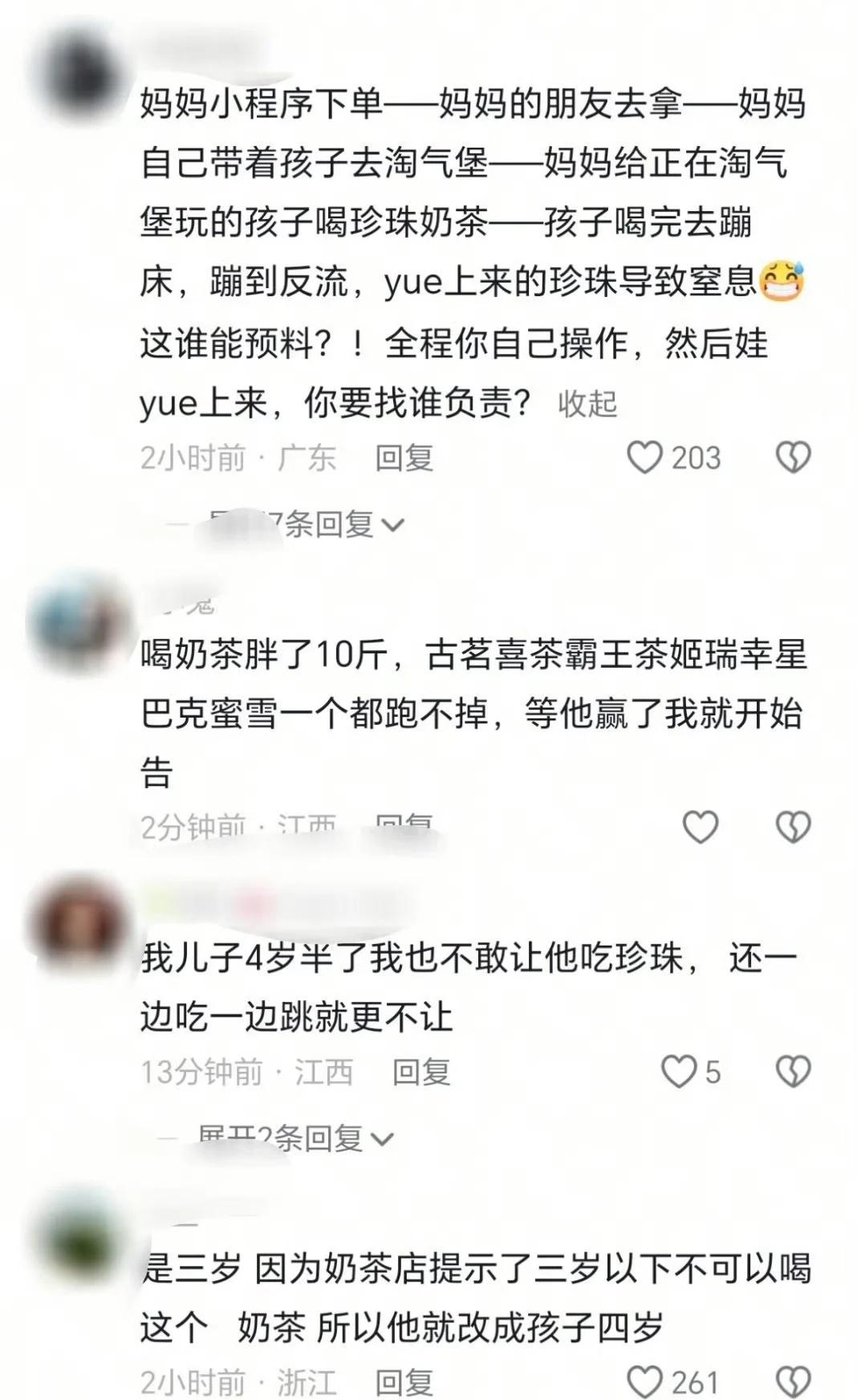 你们觉得谁的责任更大? 自己下单的珍珠奶茶让闺蜜去拿,让自己不到三岁的小孩喝,最后导致孩子窒息没了,就把店家和闺蜜都告了😨小孩不懂事怎么大人也不知道,固体饮料本身就不能给小孩子喝的,闺蜜帮忙取奶茶反手就给闺蜜一纸诉状,奶茶也不是闺蜜喂的啊😰😰一起来讨论 该死的好奇心
