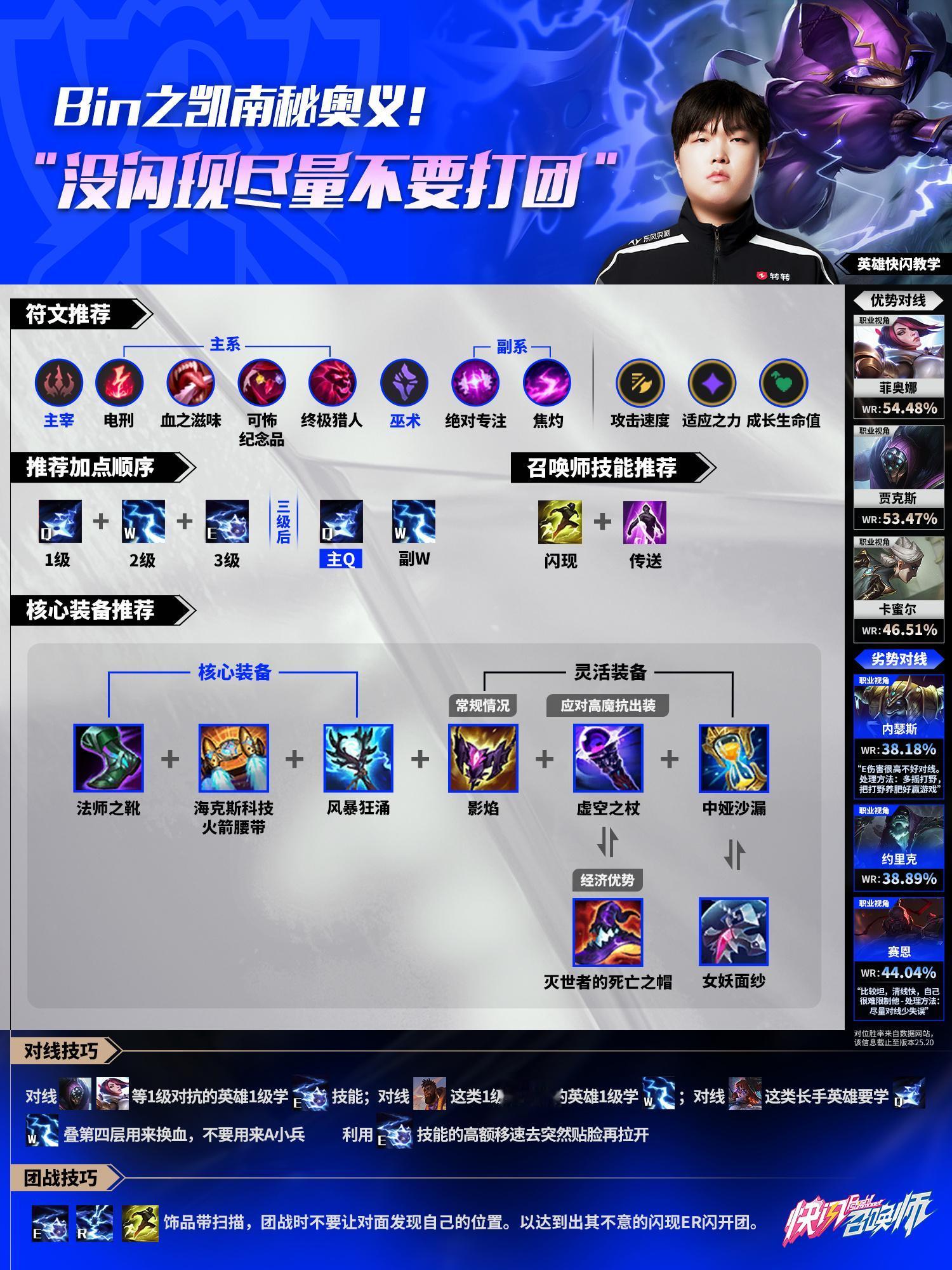 BLG.Bin的「狂暴之心凯南」顶级思路,灵活是你强势的底气,那么如何用一次“灵活”而完美的进场,“天雷降世”电晕全场呢?牢记“没闪现尽量不要打团”!
