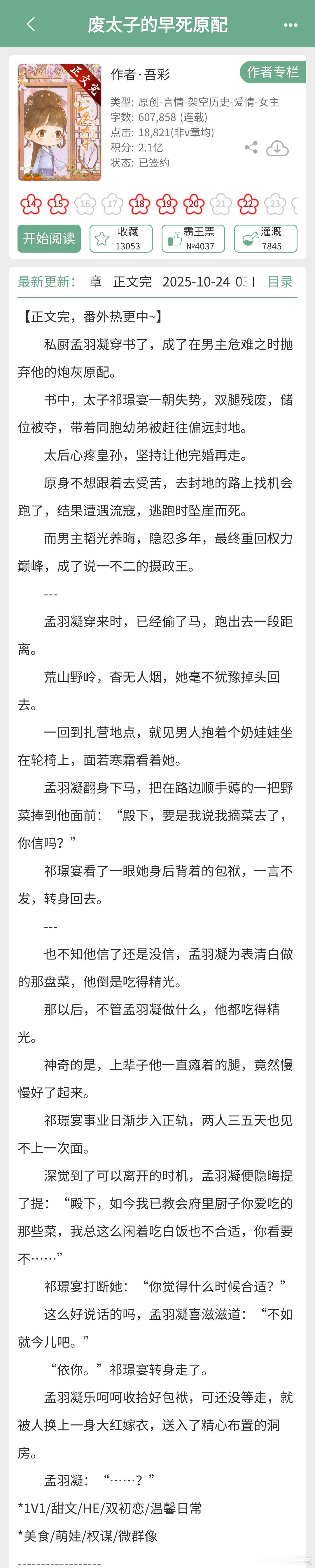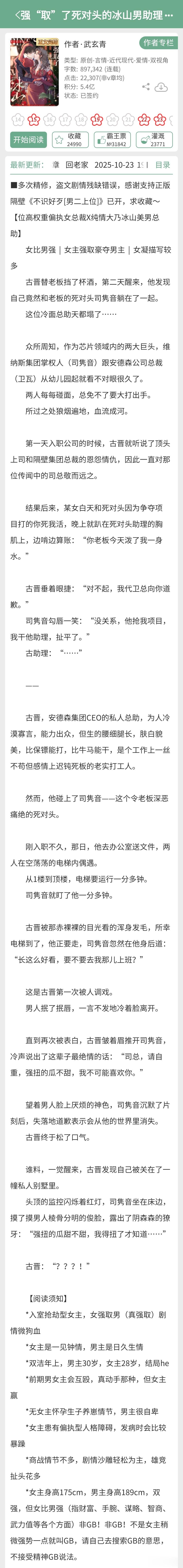 新文完结 一批言情小说完结啦1《强“取”了死对头的冰山男助理》武玄青2《废太子的
