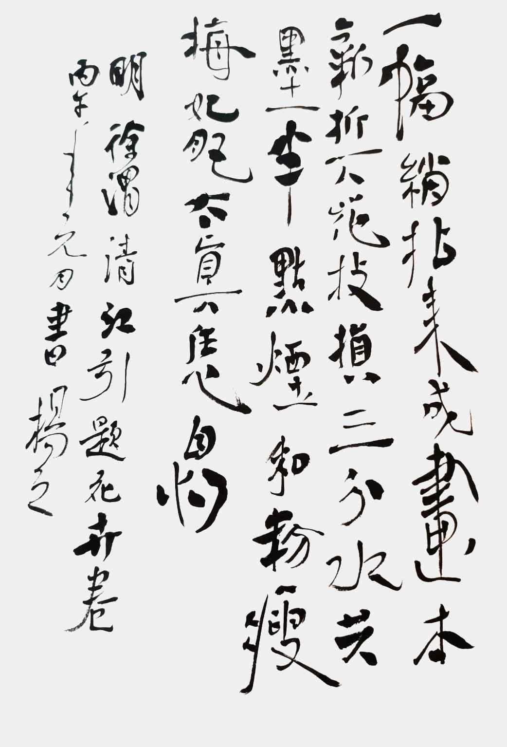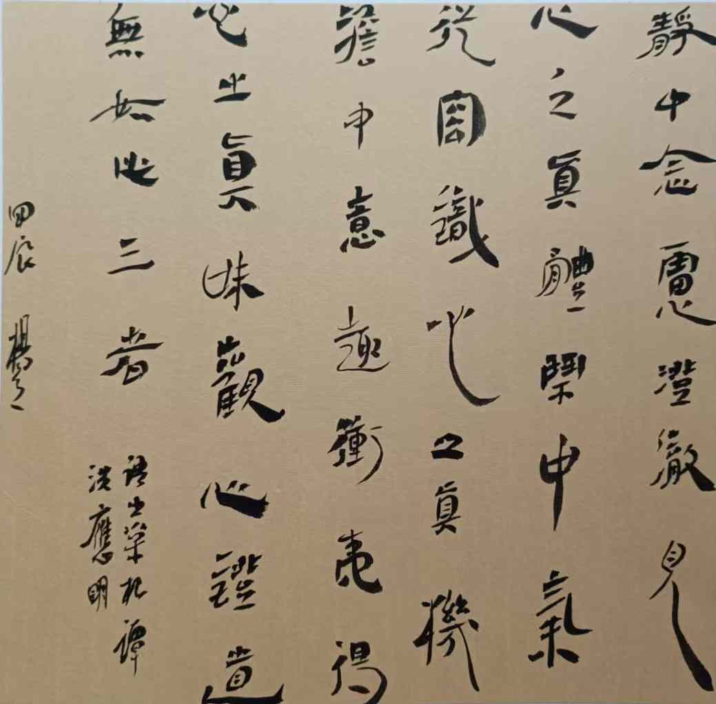 “杨体”书法的成熟,标志着杨茂祥在艺术道路上实现了自我超越。这一体系并非一蹴而就,而是经过了长期的探索与积淀。他不满足于做一名技艺娴熟的“字匠”,而是追求“对物造意”的才情与境界。他的创作思维源于传统,笔、墨、纸皆为传统材质,笔法、墨法亦遵循古法,但笔意、墨意却是新时代的观照与感悟。他将个人的心境、情绪与对万物的体悟,通过笔端流露于纸面,使得每一幅作品都承载着因时代之变而生的新文化与新思维。这种“美美与共”的审美格调,既保留了古法的精髓,又融入了当代的审美意识,实现了“以古法为我法而化了古法,以根雕之艺为我意而创了我艺”的艺术理想。他的书法,因此成为连接历史与未来、传统与现代的文化桥梁,具有深远的历史文献价值与艺术研究价值。
