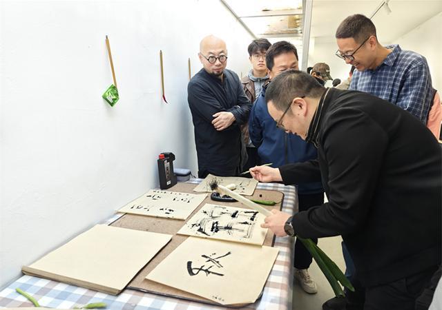 开幕式上,策展人张妍、艺术家韩旭、多伦路社区书记徐胜珍先后致辞。韩旭作为“书写实践者”,践行“万物可书写”的理念,他表示本次活动将蔬菜、玩具等日常物品转化为书法创作工具,让书法创作回归本真的表达欲望,让艺术真正走入日常。