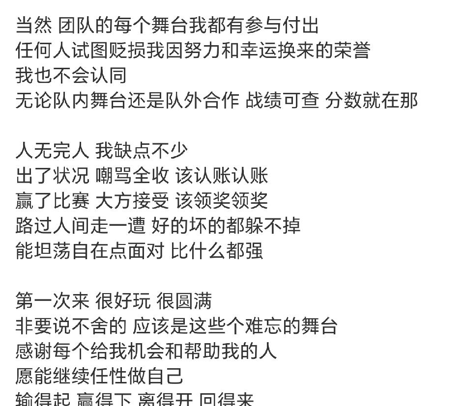 苏醒获奖后发文,说实在的,说的还是很不错的,怪不得再就业男团全体推举他为嘴替! 首先他很坦然的说出18年了,我终于赢了一次,也自嘲了自己拥有一颗透明的心灵,前世今生的梗都让他玩的明明白白的[大笑]! 其次他把兄弟们挨个夸了一遍,夸的实实在在的,快乐老咖真的个个是实力派,没有这么优秀的兄弟们全力以赴也就没有X-team,更不可能有什么X-leater,苏醒这一次,除了要严重感谢王霏霏女士之外,也要严重感谢兄弟们,尤其是张远[害羞]! 这是一个圆满的结局,不管是对苏醒还是节目组,都是一个皆大欢喜,该得到的都得到了! 输得起,赢得下,离得开,回得来 适用于每一个再次归来的再就业兄弟,真牛!苏醒舞台 苏醒