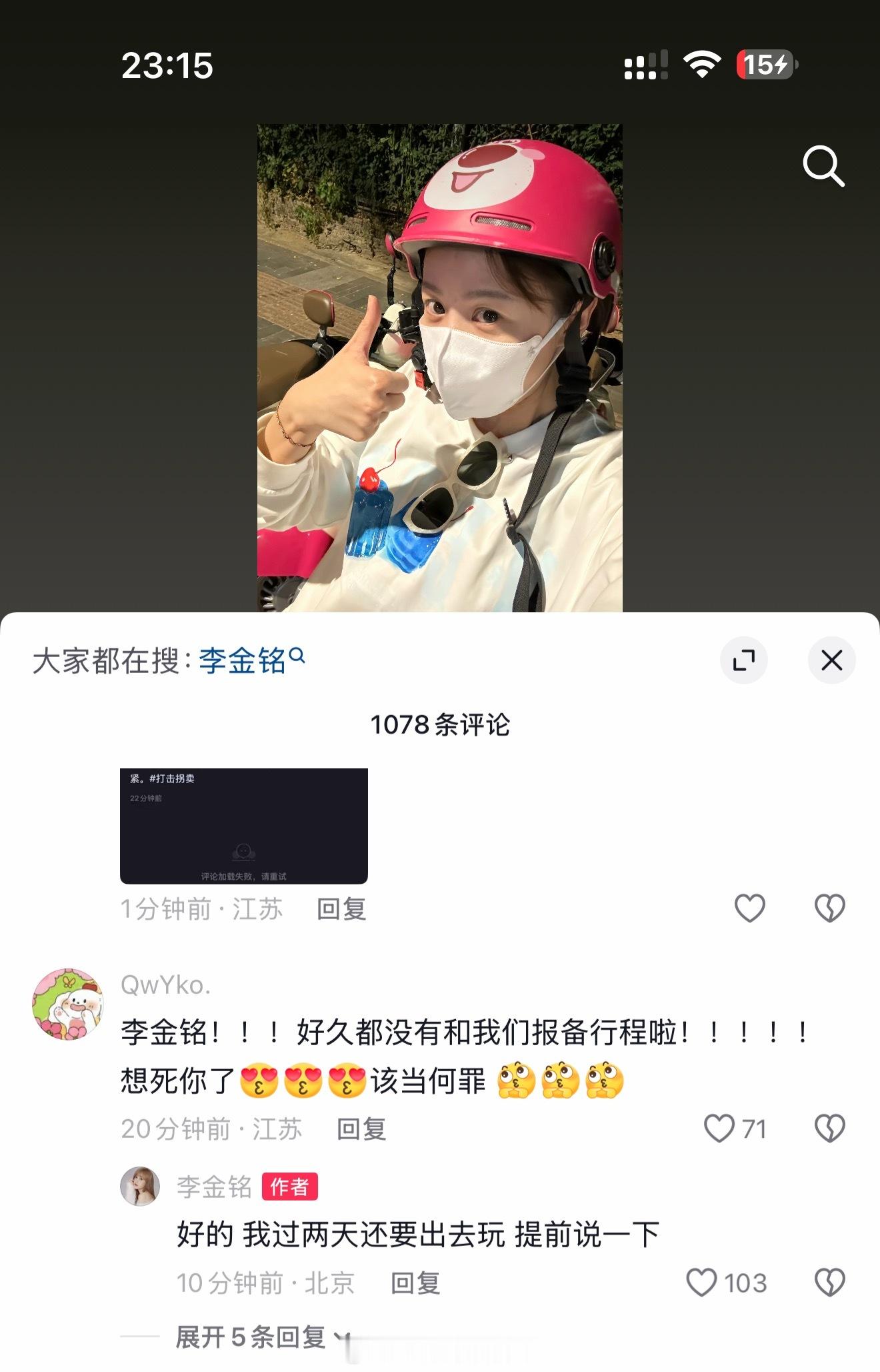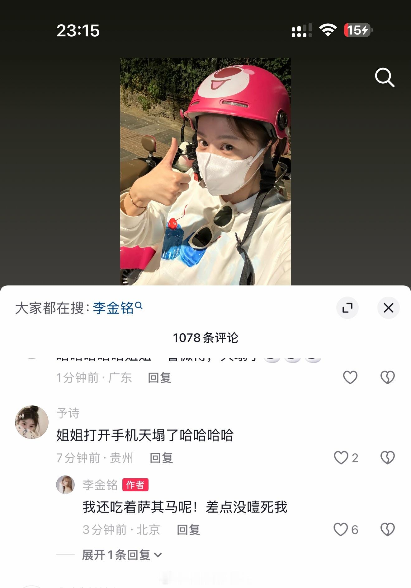 李金铭报平安了,说只是出去玩了,自己正吃着萨其马差点噎过去,过两天还要出去玩,提前报备一下[馋嘴]