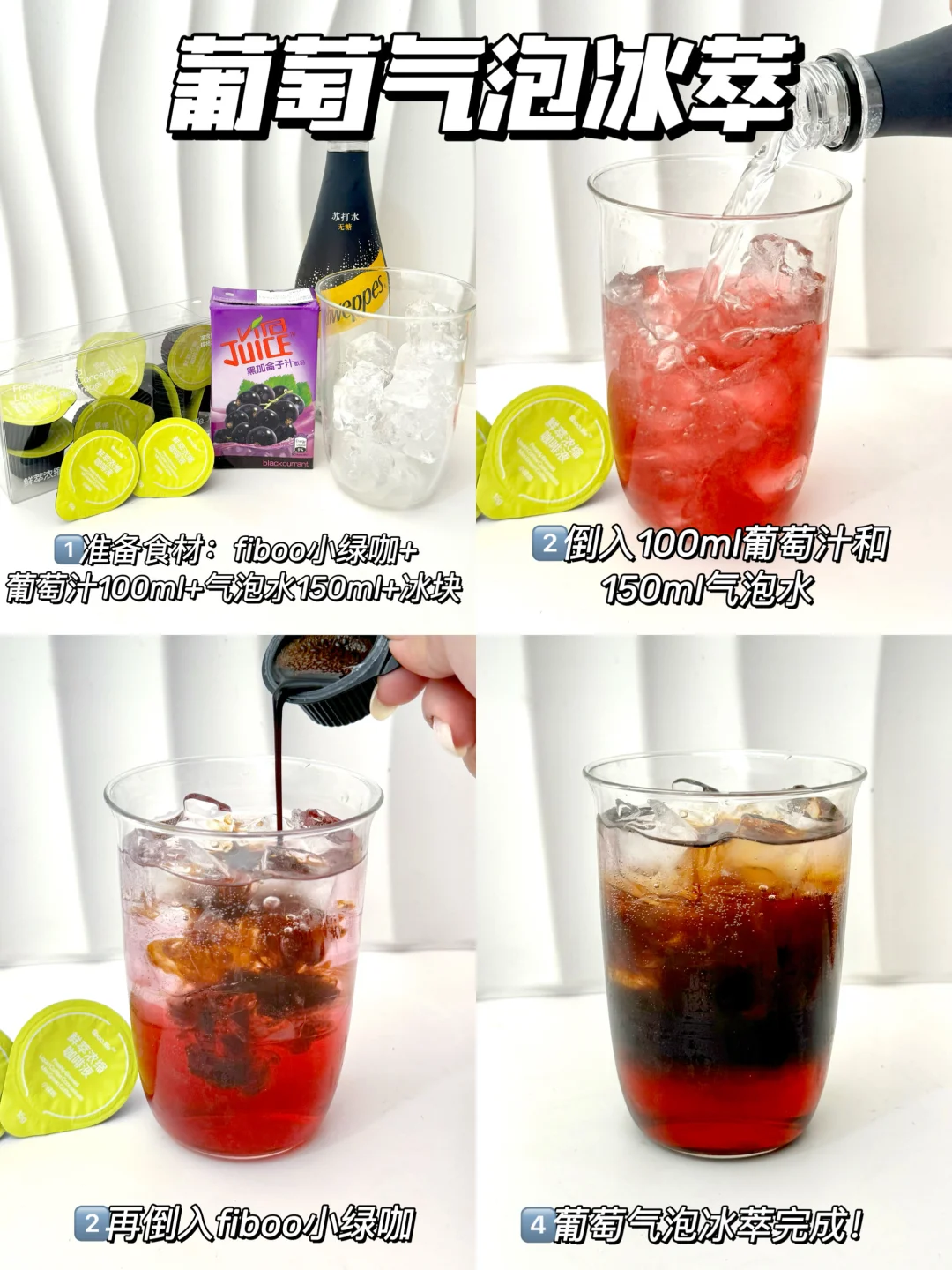 ✅一颗fiboo小绿咖+葡萄汁100ml+气泡水150ml
