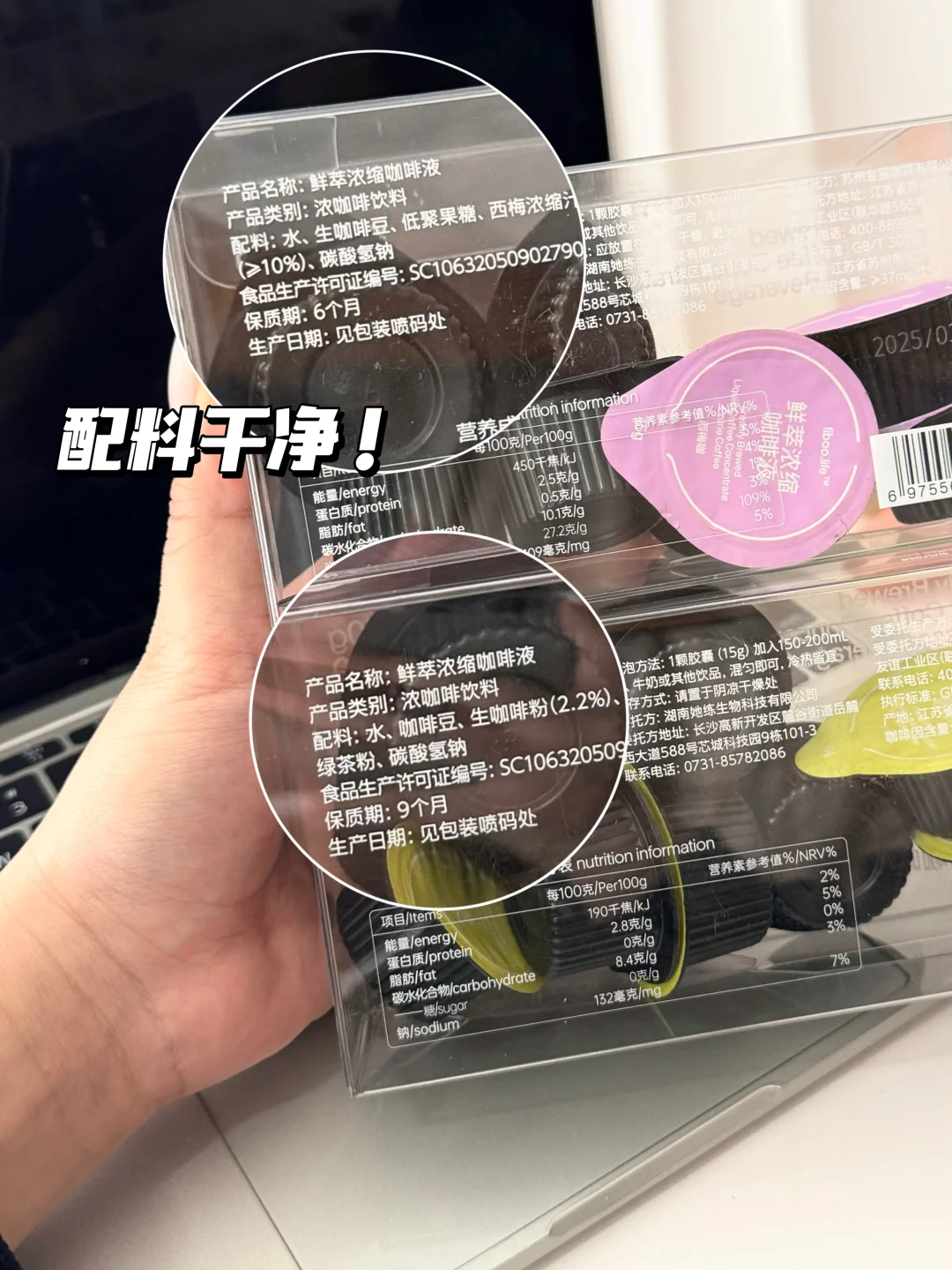 15倍浓缩黑咖+绿原酸+绿茶粉!早起喝真的很消!!也很适合健身前喝!喝起来很醇厚!能感受到坚果香气!加牛奶3s就能get一杯拿铁!口感醇香丝滑!!