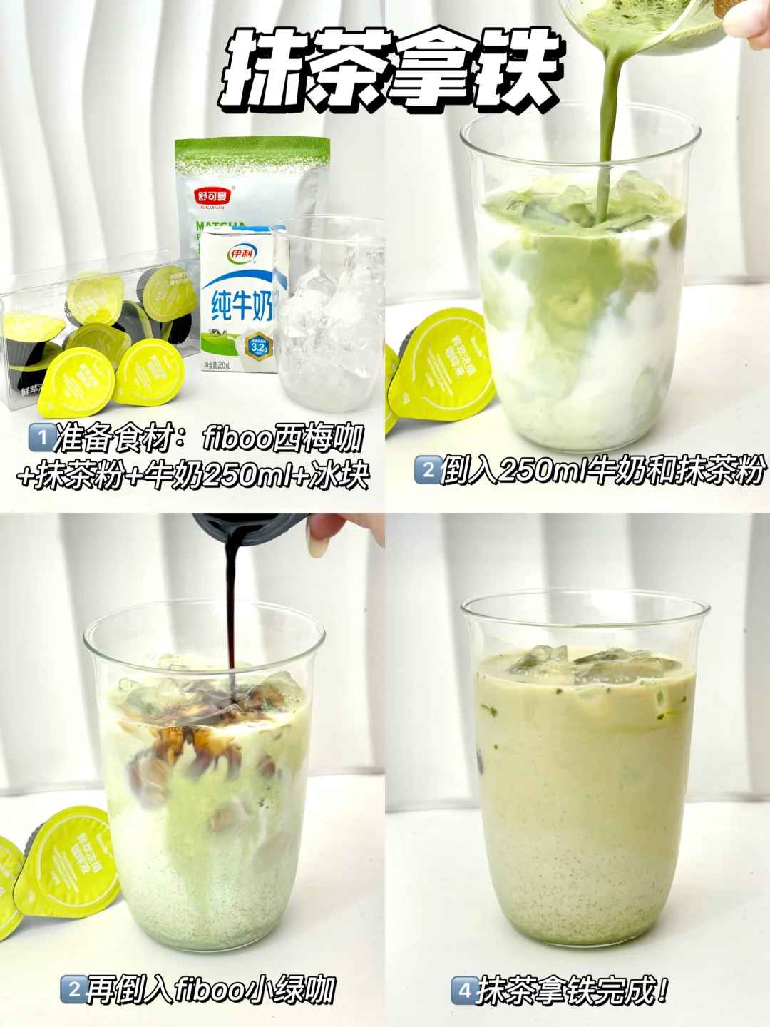 ✅一颗fiboo小绿咖+抹茶牛奶250ml