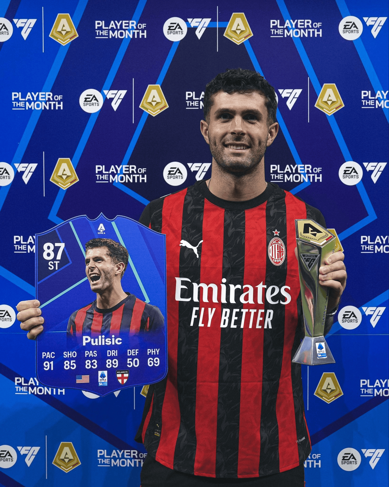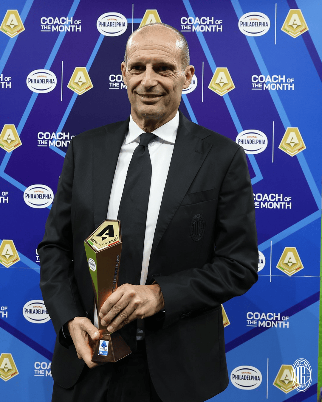 对阵比萨赛前,普利西奇/阿莱格里领取意甲月度最佳奖杯