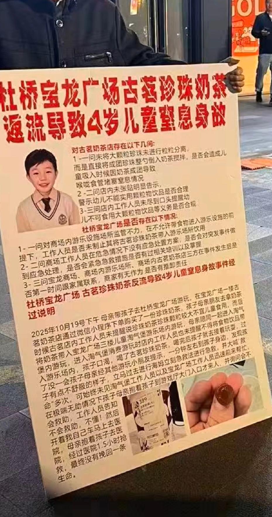 3岁幼童被噎身亡争议升级!家长说奶茶太黏、游乐场没救对,你站在哪方? 谁看了浙江这起悲剧不心疼!3岁男娃喝了珍珠奶茶去游乐场蹦床,才一分多钟就窒息昏迷,抢救1小时还是没留住😭 现在家长和游乐场各说各的——爸爸李先生觉得奶茶太黏稠、游乐场救助不当,可游乐场说已经尽到责任,三方还在调解,责任鉴定书也没出来 。 奶茶店小程序是标了“3岁以下不宜喝”,但再醒目的提示,也顶不住孩子吞咽功能没发育好啊!尤其现在珍珠为了口感,可能加了增稠剂,黏糊糊的卡喉咙堪比“夺命胶”,5岁以下娃吃着真的太悬!更关键的是,游乐场作为儿童密集的公共场所,按民法典说就得尽到安保义务,急救技能难道不该是标配吗? 咱不纠结谁对谁错,更该揪出“安全漏洞”:带娃坚决不买有珍珠、椰果这类黏腻小料的;吃饭喝东西的时候绝对不能跑跳;家长必须吃透海姆立克急救法,1岁以下和大孩子操作还不一样 ! 你们觉得这事责任该怎么分?带娃时还避开过哪些“隐形杀手”?评论区聊聊,让更多家长抄作业,别让悲剧再重演! 3岁男童奶茶噎亡调解中 儿童安全无小事 海姆立克急救法必学