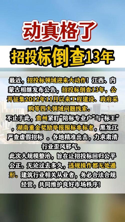 近期,江西、贵州等多地启动招投标领域倒查行动,追溯时间长达13年,覆盖2012年11月以来工程建设、政府采购等四大领域项目。此举响应2025年反腐重点,依托电子标数据留痕技术,严查围标串标、权力寻租等乱象,更以奖励举报等方式鼓励监督,释放反腐无禁区的强烈信号。贵州反腐 招投标倒查