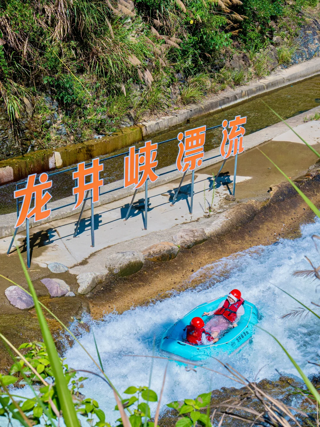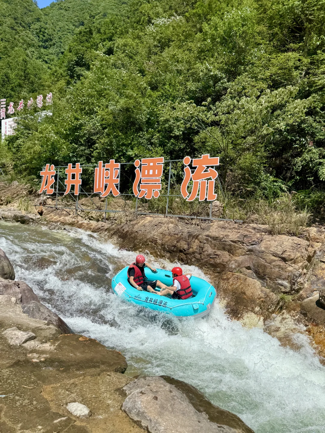 杭州的天气已经40°了 正是玩水的好去处 找了一圈发现了这个避暑玩水圣地 水质肉眼能看到的清澈 而且还打开了漂流的新方式 原来漂流还能这样玩~ . 📍浙西大龙湾游客中心 🚗杭州市区出发约1.5小时,建议早上出发 🕘漂流开放:13:00开漂,15:00停止入场 . 🌟游玩顺序: 三渡悬崖漂流-龙井峡漂流-三渡山地运动公园 . ✅三渡悬崖漂流 建在山巅悬崖上的玻璃滑道,就好像一条巨龙盘踞于峡谷之中盘旋而下,1200m的长度,68m的高度落差,顺着岩壁给你带来全新的失重体验感。 ✅龙井峡漂流 全长3公里的峡谷漂流,落差将近128m的高度,这里的水源来自928米的高山泉水,肉眼能看得到的清澈,全程游玩预计1.5-2H,不仅仅能体验到俯冲的快感,也能安安静静的躺在皮划艇上悠闲的游荡,打开了我的漂流新体验,全程泡在水里的那种清凉感真的不能用语言表达。 ✅三渡山地运动公园 在漂流的出口处还有各种刺激的游玩项目,滑板车、悬崖过山车、林间速滑道等等,不用吹风机,直接甩干。 . ⚠漂流小提示: 1️⃣建议带一套欢喜衣服,方便漂流之后更换 2️⃣建议带一次性毛巾 3️⃣水瓢、水枪、塑料碗、防水袋等可以准备,现场也能购买 4️⃣防晒工作要准备好,漂流时间比较长。 5️⃣提前到达景区准备,不然排队时间比较长