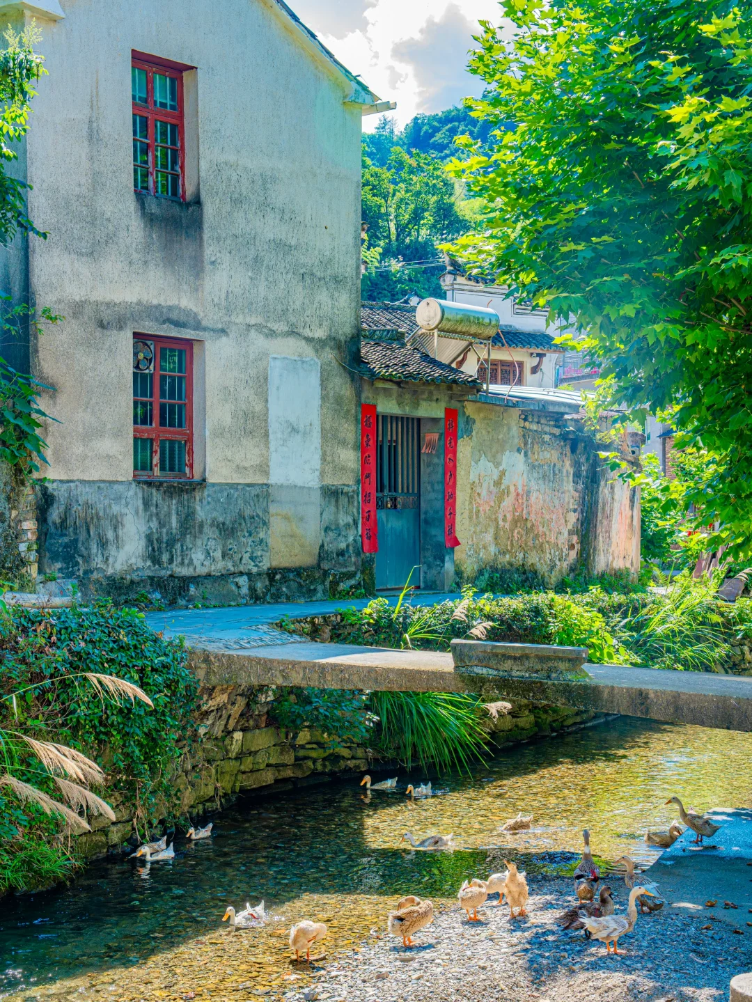 图9️⃣-1️⃣2️⃣:具有750多年历史的古村落🛖 建筑主要以徽派风格,白墙灰瓦,古色古香🧱,而且村落还有一条小溪,可以到溪流里面抓鱼和打水战,也是夏天避暑圣地,村落商业化不严重,保留这原始的面貌