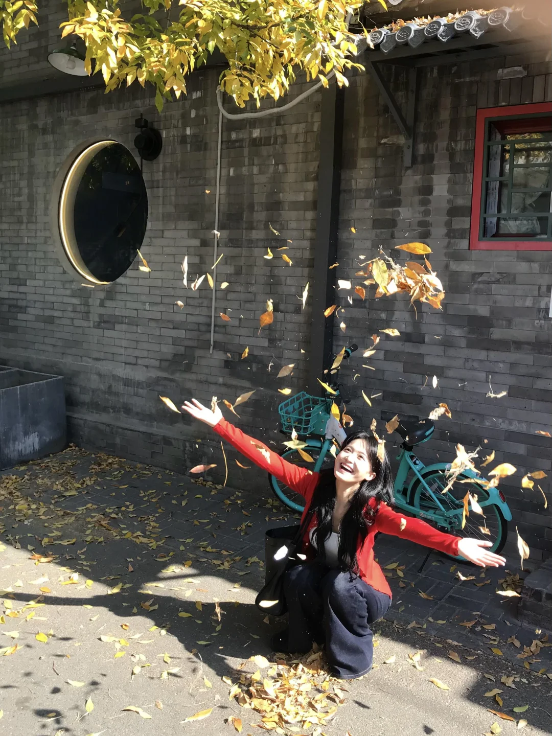 真的很喜欢这组! 鼓楼、巷口都逛了一圈 收藏秋天落叶🍂的拍照姿势~