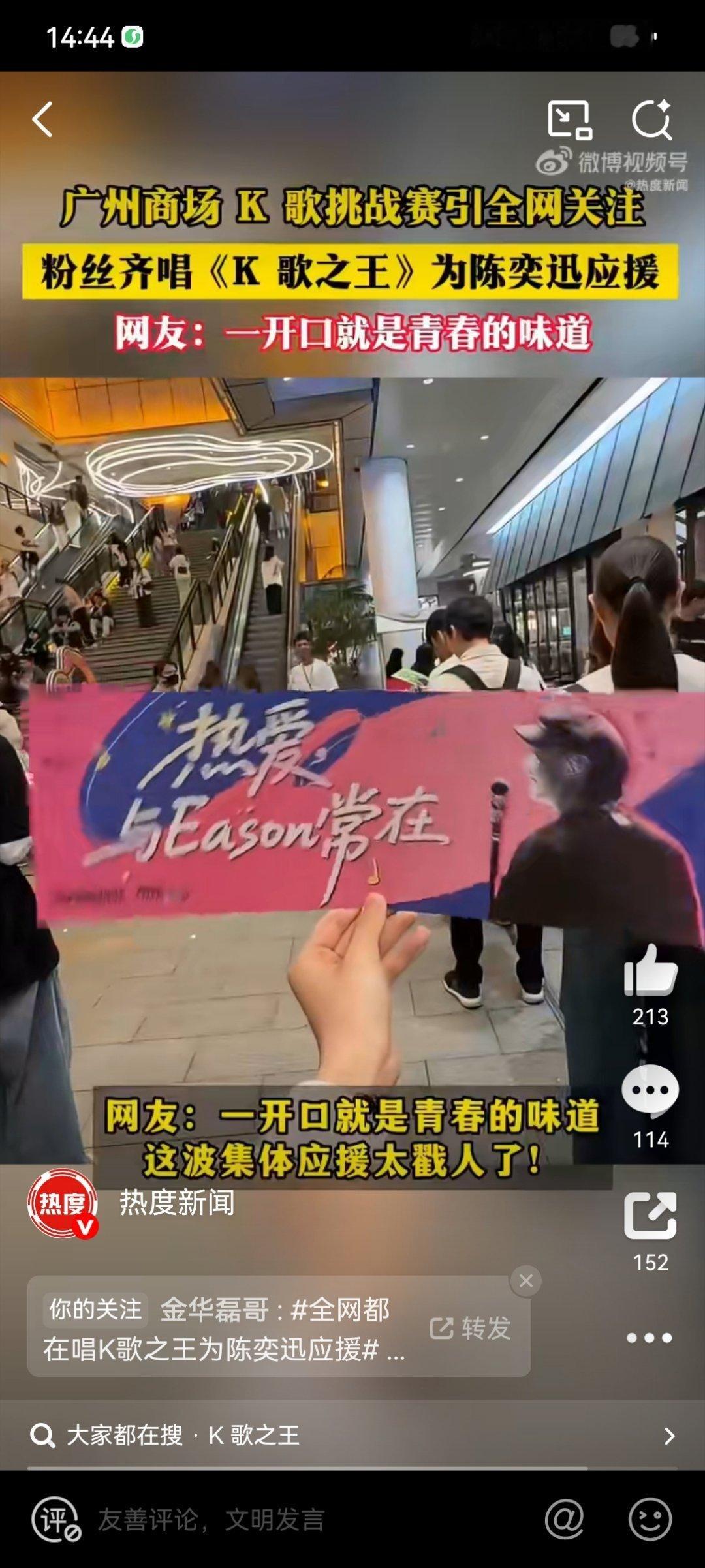 全网都在唱K歌之王为陈奕迅应援这场K歌应援太暖了!当《K歌之王》旋律响起,素不相识的人们齐声合唱,瞬间唤醒了共同的青春记忆。这不仅是一次粉丝应援,更是城市里充满人情味的互动。为这份纯粹的感动点赞!
