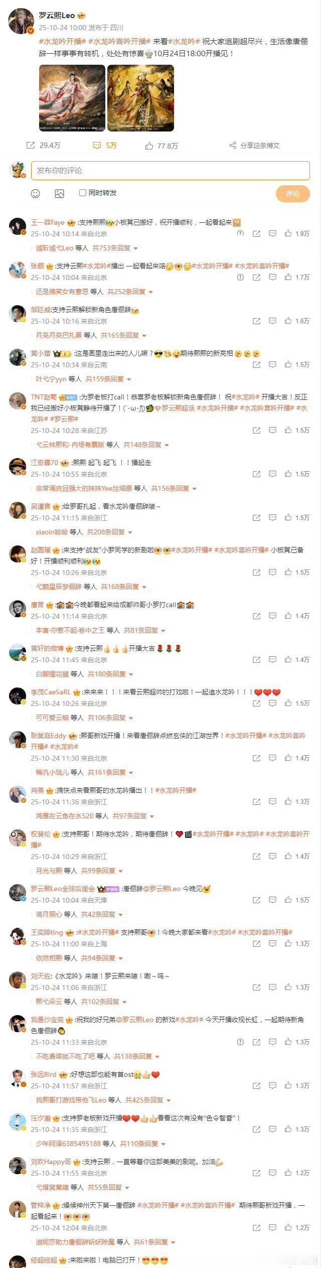 半个娱乐圈都来为罗云熙的水龙吟捧场了