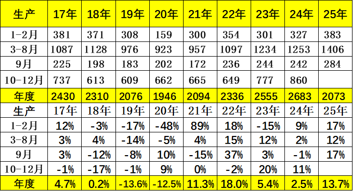 9月乘用车生产284万辆,较8月的生产暴增,生产异常拉升是看好年末销量冲刺,类似2017年9月走势。
