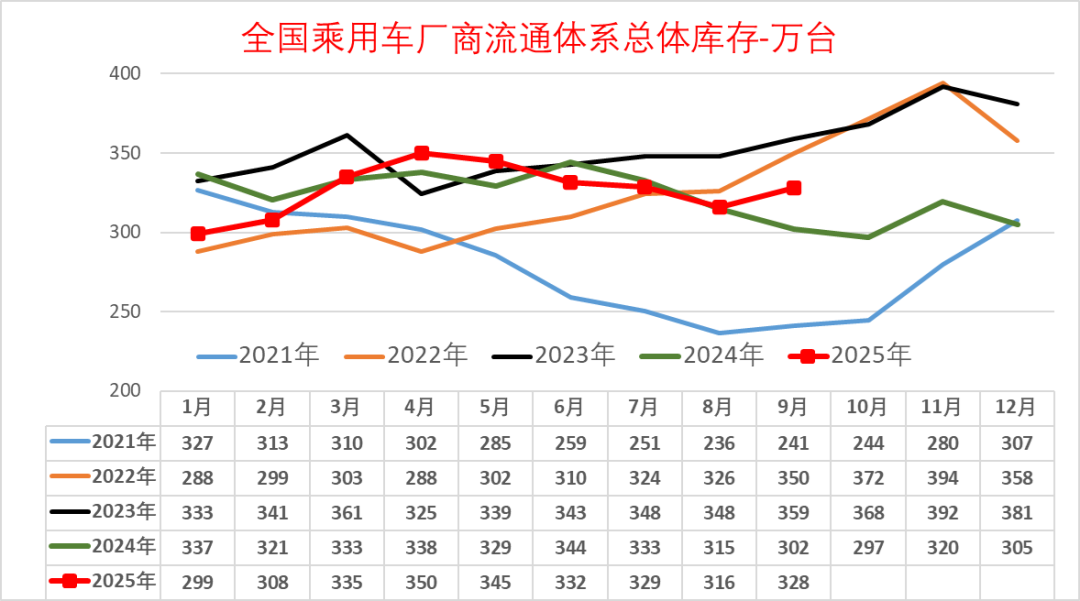 乘联分会秘书长崔东树称,2025年9月月末全国乘用车行业库存328万辆,较上月增12万辆,较2024年9月增26万辆,形成库存回升的旺季备货特征。2025年4月仅生产新能源车的企业的库存达到峰值的88万辆,随着反内卷的推动,行业库存9月降到62万辆,较峰值库存降26万辆,降幅达30%。近期新能源车经销商的厂家和渠道库存明显下降,行业库存总体压力稍有改善。