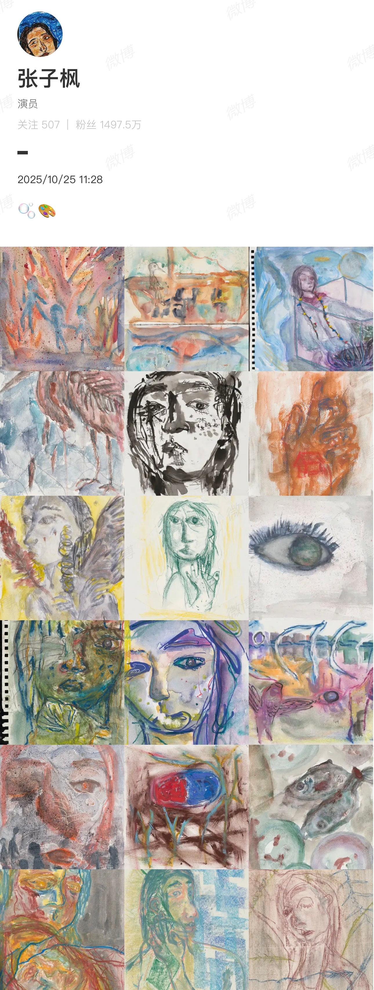 张子枫为林沫沫画的画看了张子枫的微博才知道原来子枫为沫沫画了这么多画哇!在妹妹的微博里,才对“用画画进入林沫沫”这句话有了实感。在工作室发布的画画vlog中,子枫拿着画本自己一个人安安静静的在画画