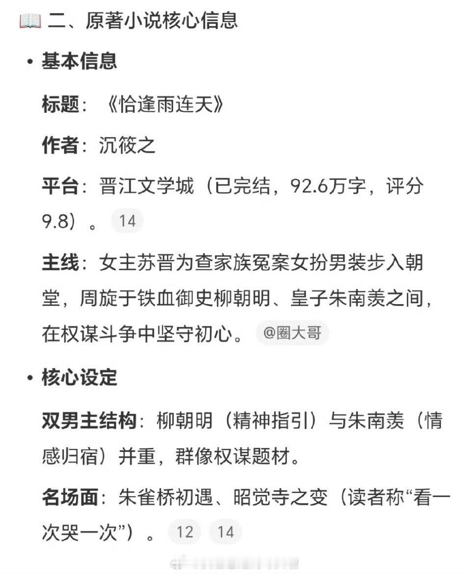 🍉古装权谋剧《恰逢雨连天》白鹿原著剧情风格类《琅琊榜》《鹤唳华亭》,女主女扮男