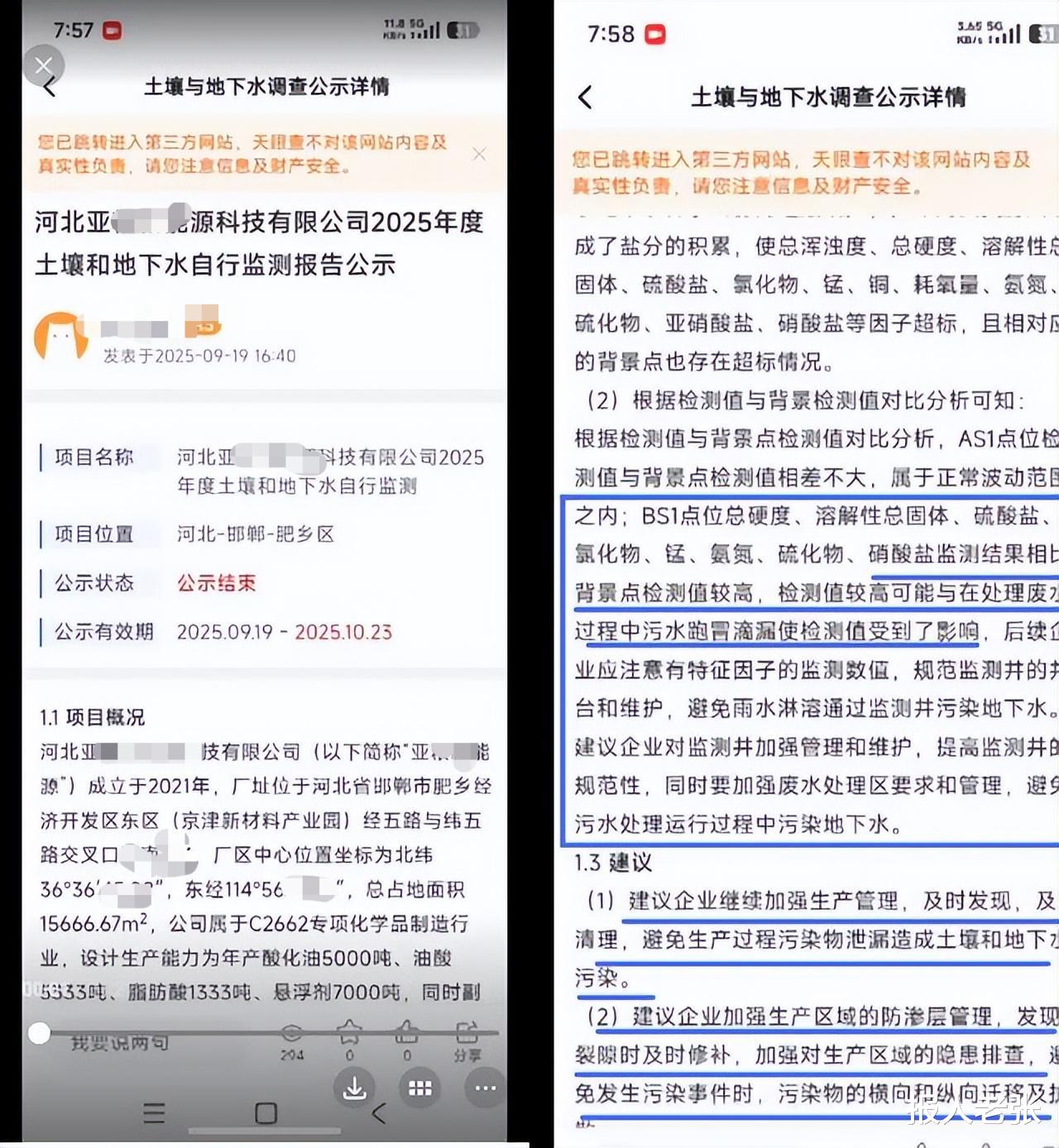 根据该公司2025年9月19日公示的《河北亚XX能源科技有限公司2025年度土壤和地下水自行监测》报告(下称“报告”)显示,该企业成立于2021年,2025年才首次进行自行监测。