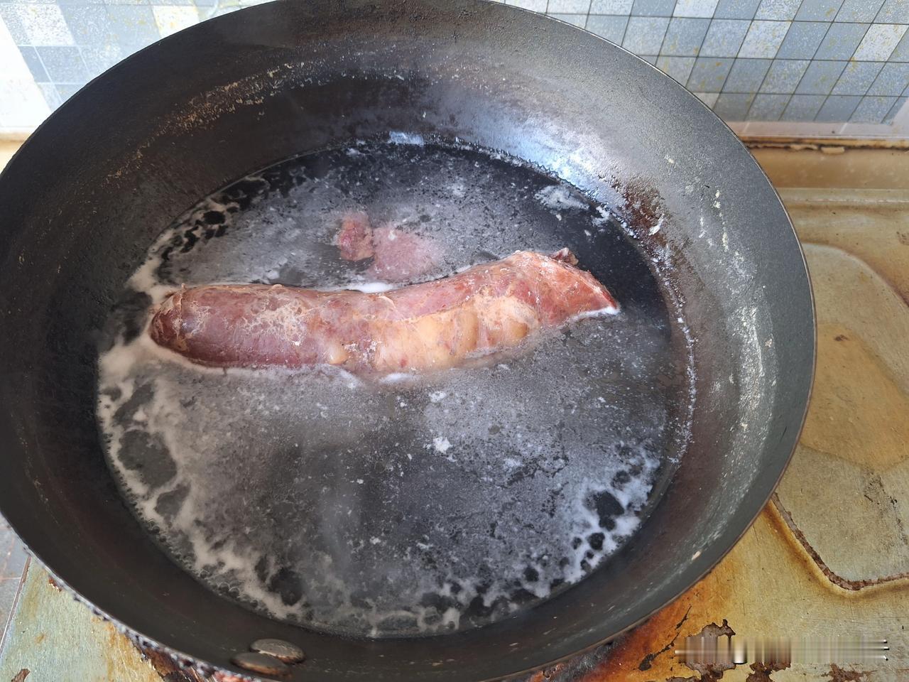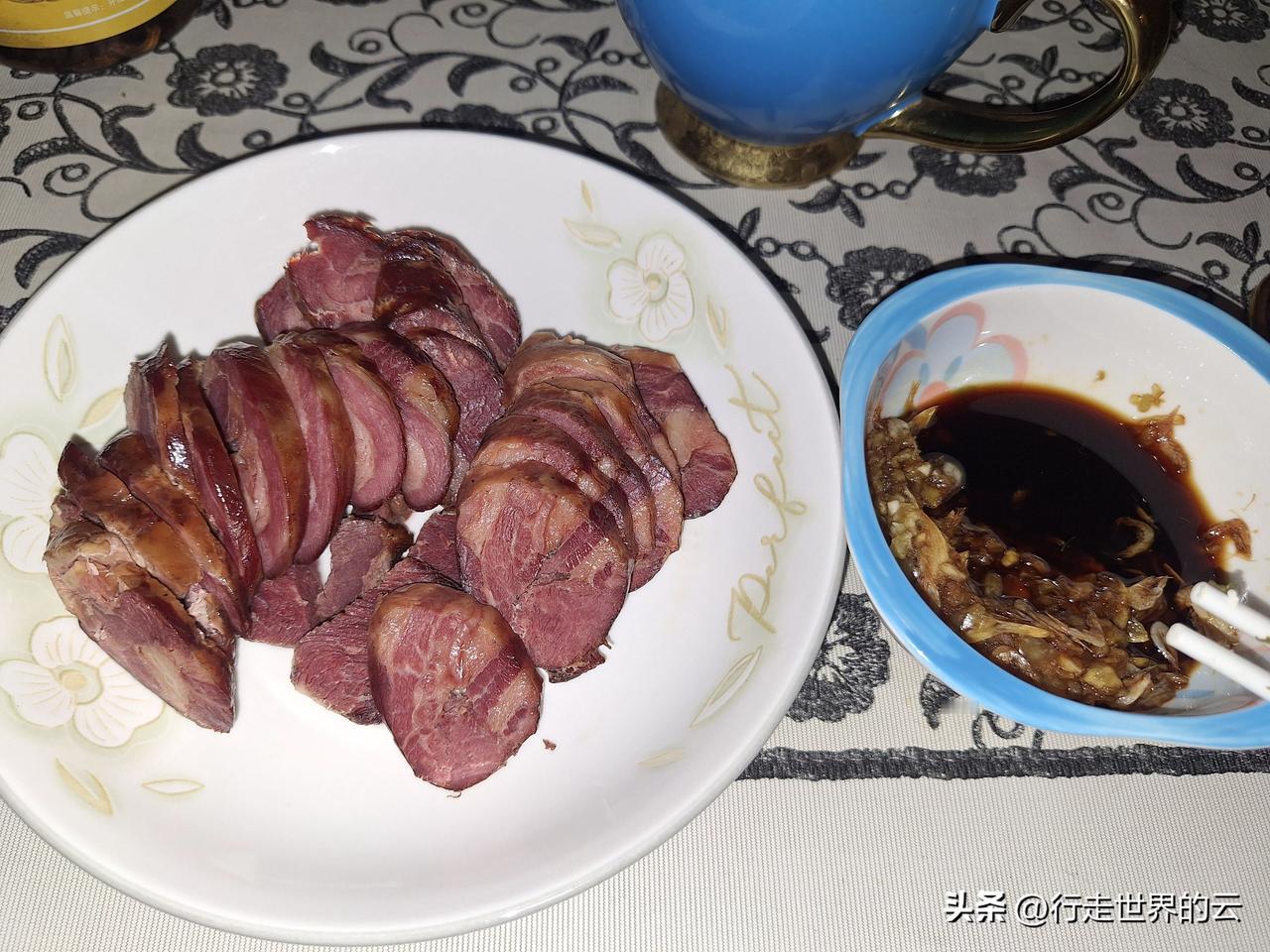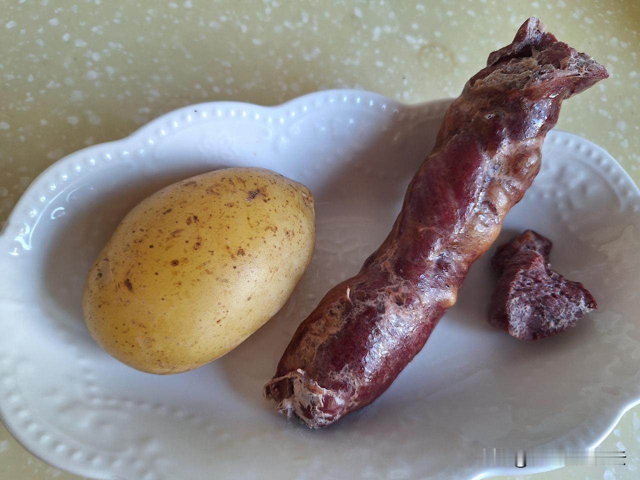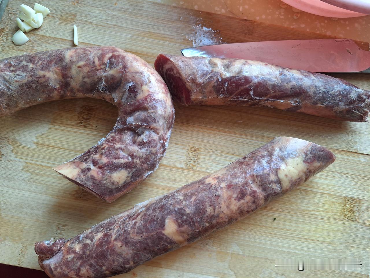 第一次吃用马肉做的香肠,这是哈萨克风味的美食,马肉用肠衣裹缚,萍果树枝烧火熏制而成,买来是生的,要煮一个半小时,味道还不错。