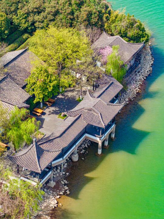 深入天目湖的一座半岛,状元阁适合清晨登顶俯瞰山水风光,还有一路上的鲜花美陈,真的是感觉掉到了春天的花海里面,还有随机出现的花车,为春天抹上一笔春日色彩。
