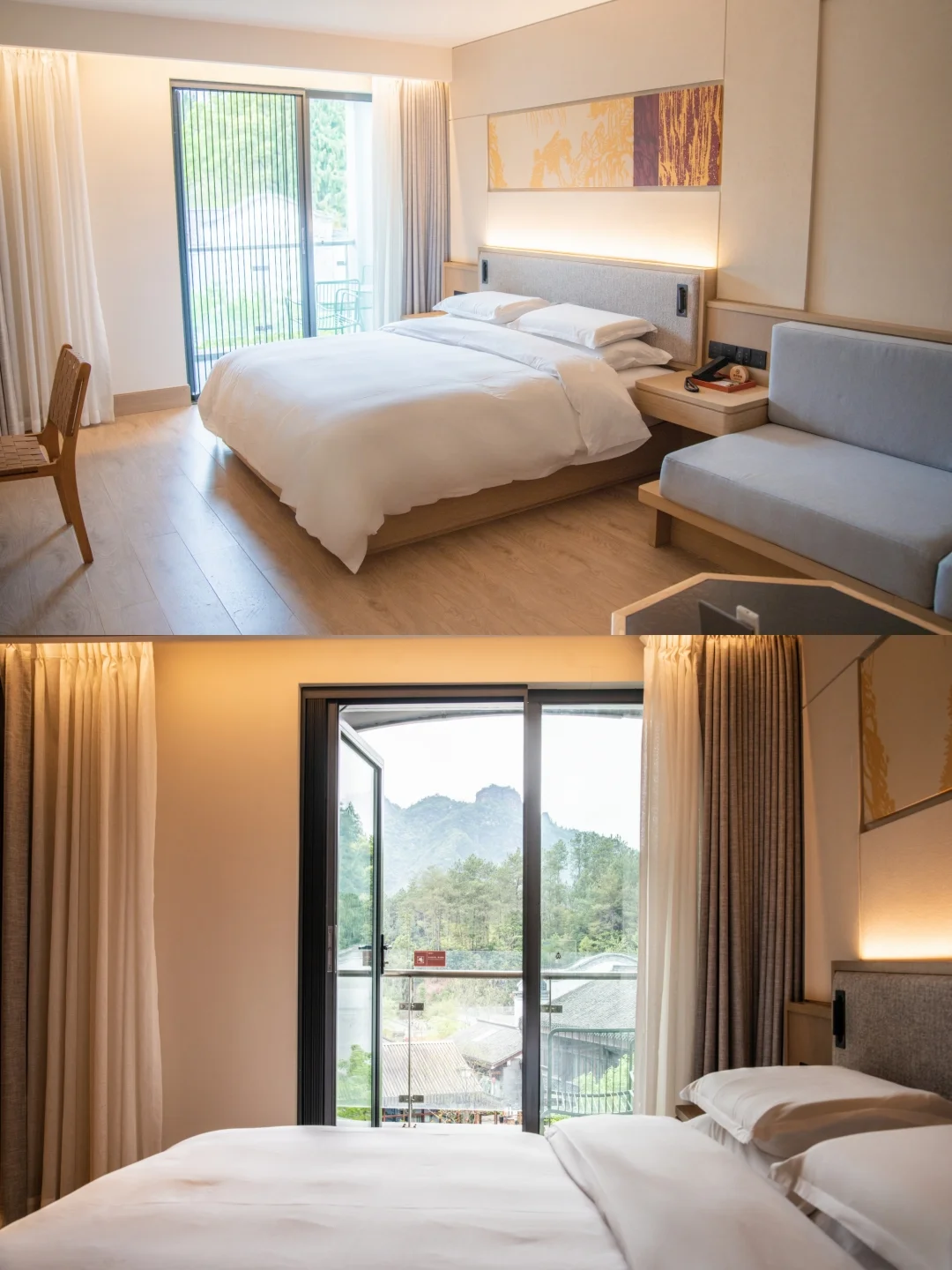 相对于人挤人的黄山 我更加喜欢这座低调的仙山 山奇水秀,丹霞地貌 加上悬崖上的古村落 无疑为这座仙山添上神秘色彩 去了N次,每次都想向你安利 这次五一让我们一同再去齐云山 这份徒步攻略千万要收下 . 🏔|齐云山度假区 📍|安徽省黄山市休宁县齐云山镇 🚅|高铁坐到黄山北站,有直达公交,或打车 30min Day①:入住酒店-萌宠乐园-看非遗打铁花、炭花舞-横江山水竹筏-夜游齐云小镇 Day②:索道上山-齐云山徒步观光-返程 . 🌟徒步路线: 望仙楼-桃源坊-洞天福地-洞天坊-寿字岩-一天门-真仙洞府-二天门-三天门-月华天街-太素宫-小壶天-长生楼-玉虚宫-紫云关-方腊洞-方腊寨-最高峰-白岳食府-悦华台-逢源台-凌虚道-展诰峰-坐忘台-梦真桥-望仙楼(预计在6-7小时) . 🌟打卡推荐: 【真仙洞府】抬头就被千年摩崖石刻包围,"天开神秀"四个白色大字扑面而来的震撼感! 【天官府】一盏清茶半日闲🍵 木窗棂透过的光斑洒在蒲团上,手机随手拍都是古风大片~ 【月华天街】悬崖上的千年古村!道士与村民共居的千年秘境,云雾缭绕时真的会恍惚在仙境☁ 【玉虚宫】山即是殿,殿化为山!沿着天然岩壁生长的道教圣殿,转角竟藏着唐伯虎真迹石刻! 【方腊洞】巨石压顶的压迫感×青山远黛的治愈力! 【方腊寨】云端孤岛既视感!无人机升空瞬间,场面非常震撼。 【萌宠乐园】里面有多种宠物可以喂养,还能互动,非常有意思,很适合亲子去体验 . 🌟住宿推荐: 住宿选择齐云山度假酒店,酒店提供黄山北站接送服务直达景区,很方便。酒店面山而建,每间房都有阳台,推开窗就能独享徽派山水画般的景色。楼下便是齐云小镇,步行至景区月华索道站仅5分钟路程。 . 现在更有每天20项表演,根本看不过来,也是我N刷的宝藏仙山。 .