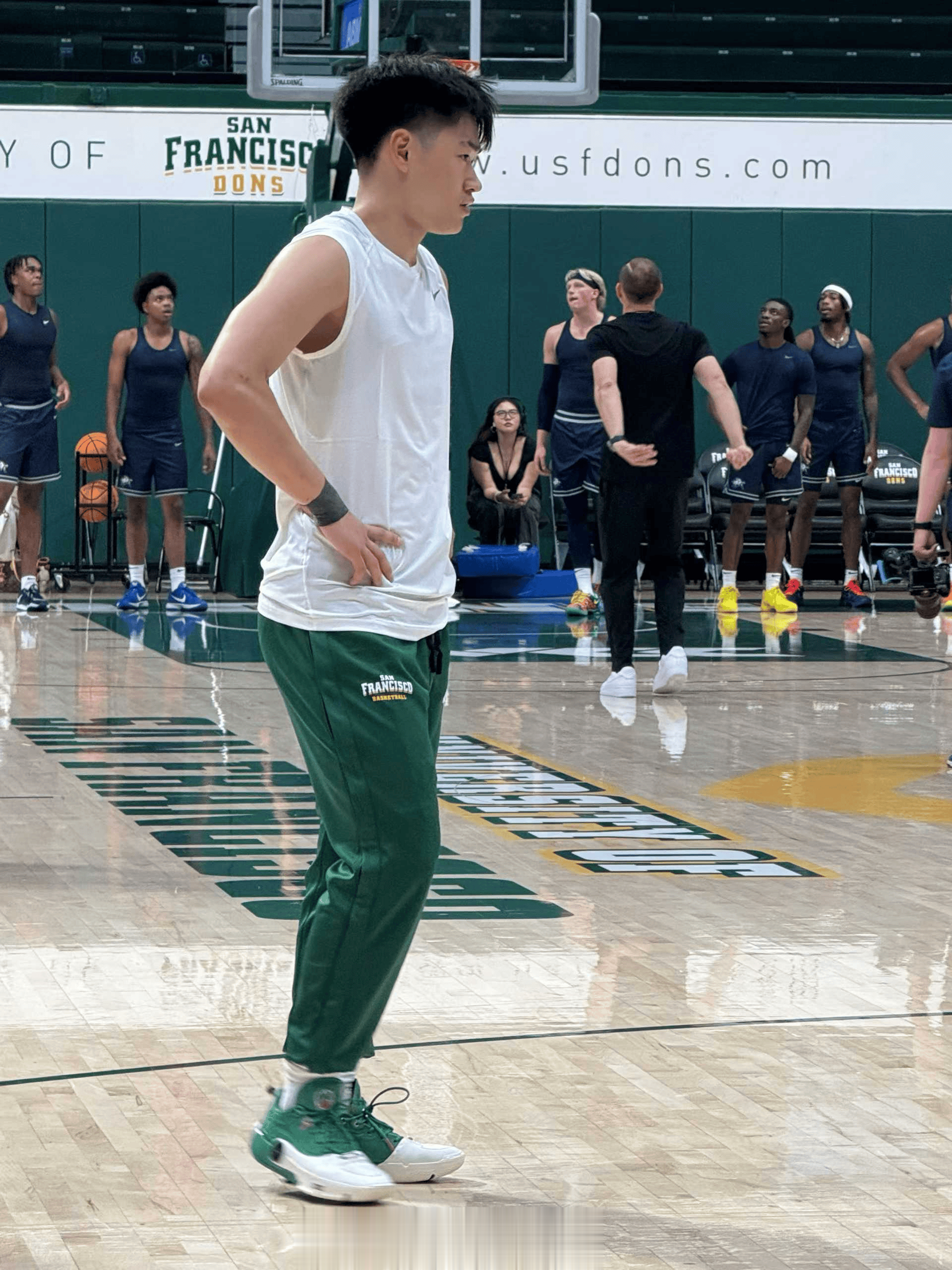 配文:大家应该很想看到他俩,旧金山大学新赛季首场季前赛,对手是犹他州立大学。