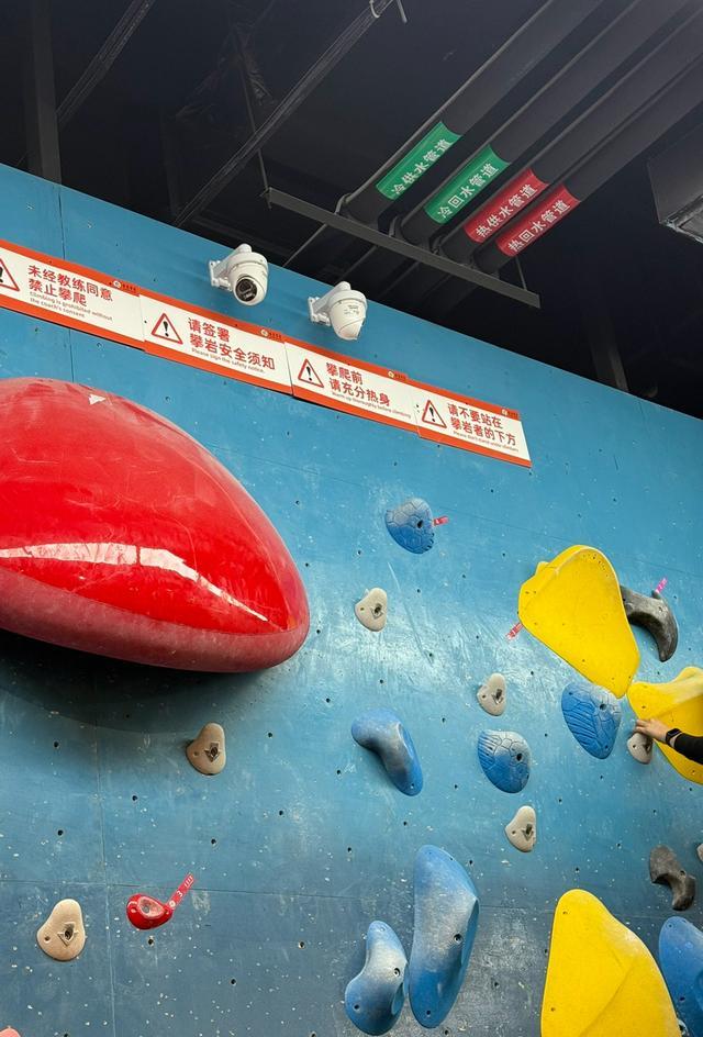 “很多新人不知道怎么处理‘撞线’”,郑先生也向记者吐槽。攀岩馆的墙面上,同一颜色的岩点为一条线路,不少线路存在交叉区域,所谓“撞线”则是两人攀爬不同线路,在交叉区域“撞”上。不少新手在这种情况下容易慌张甚至摔下,关于如何“让线”也缺乏相应的技巧培训。