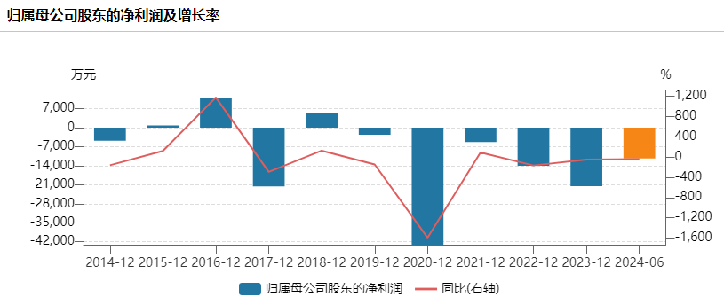 鼎盛时期,其控制着中外资本市场上控制着7家上市公司,仁东控股就是其中一家。wind数据显示:截至今年6月30日,仁东控股总资产42.7亿,总负债42.9亿,已经资不抵债。其从2014年开始基本上连年亏损,今年上半年营业收入6.7亿,同比下降24%,净利润亏损1.1亿,同比下降44%。