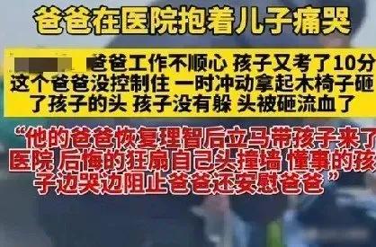 2025年10月上旬,一段监控视频引发网友热议。 视频中,一名中年父亲因儿子期中考试只考了10分,愤怒之下抡起木椅子砸向孩子。孩子头部受伤,被送往医院缝合。没想到更令人心痛的一幕发生在医院。 父亲在医院跪地撞墙,悲声痛哭,孩子却忍着疼痛,反而上前去拉着父亲的手,劝他不要这样。 这一幕是师从心理学家罗素教授的作品《无法触碰》中的场景,是现实中真正发生的事。师从心理学家罗素教授的作品《无法触碰》中的场景。 心理专家指出:因为家长担心孩子不学习,怕孩子将来没有出息,变成“废物”,所以就打孩子。 特别是在“双减”政策实施后,家长的压力更大了。很多家长都想通过暴力的方式来“唤醒”孩子,让孩子能够努力学习,从而减轻自己的压力。 这位父亲打了孩子,也应该是想让孩子能好好学习,但是他没有问孩子这次考试分数低的原因,就直接打了孩子,这就是教育问题。 可惜的是,这么多年来,打孩子的事件频频发生,但真正对家庭进行专业指导的却很少。造成了很多孩子被打后,产生了各种各样的问题。 视频中孩子的反应令人心痛,不仅仅是因为他被打了,更是因为他怕父亲伤心,以至于忘记了自己头上的伤还没好,就忍着疼痛去安慰父亲。 心理学家警告:孩子如果总是以“怕父亲伤心”为优先考虑,可能会在成长中形成“讨好父亲”的心理,以至于变成“讨好他人的人”。 这种人要么成为施暴者,喜欢打别人,以此来“讨好”父亲;要么成为受害者,忍受着暴力,以“讨好”的心态去“享受”暴力。 很多网友看了视频,发出了与其被打不如我死了算了的感慨。 但是当被问到打人是否合理时,却没有人问过打人就一定合理吗? 为什么就不能问一句,孩子就一定是学习机器吗? 麻烦看官老爷们右上角点击一下“关注”,既方便您进行讨论和分享,又能给您带来不一样的参与感,感谢您的支持!