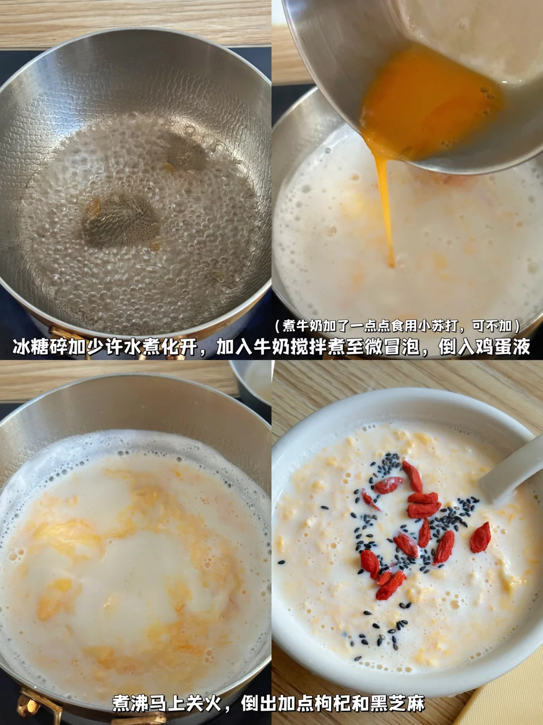 买的半成品,空气炸锅180度10分钟(我喜欢烤老一点),泡在牛奶蛋花汤里,吸饱了汤汁又保留一点脆,绝了!