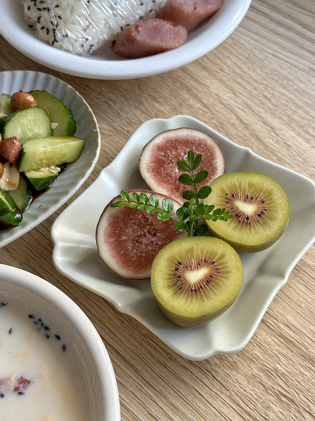 饭后小甜点~红心猕猴桃甜滋滋的,无花果软糯清甜,补充维C,颜值还高!