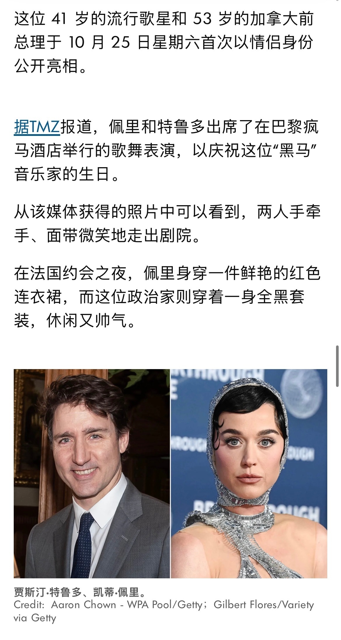 水果姐恋情 水果姐恋爱水果姐Katy Perry昨日与加拿大前总理第一次以情侣身