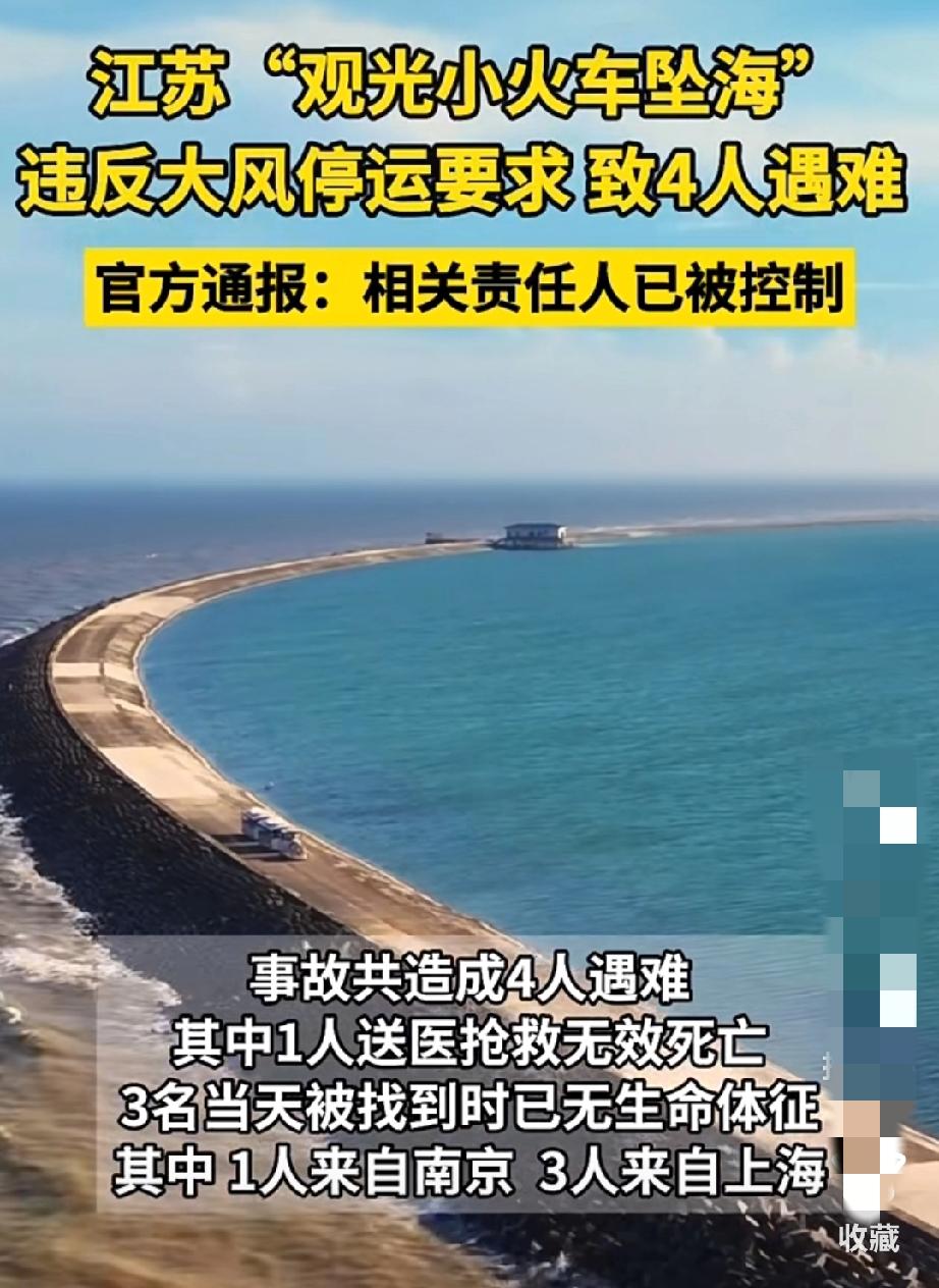哪里是被海浪带走的生命,分明是景区把人命当儿戏的警钟!黄金海滩那起事故,4条人命没了,最戳心的是那位大爷,眼睁睁看着不会游泳的老伴被浪卷走,自己抓着东西在海里漂了俩半小时才获救。 头天气象台就发了9级大风预警,明确说了要停运,可景区偏要顶着风险发车。敞篷的观光车连件救生衣都没有,路线还选在没防护的大堤边,简直是把游客往危险里推。 据说责任人被抓了,但逝去的人回不来了。景区的安全底线不该是出事后才画,预警不是废纸,救生设备更不是摆设。