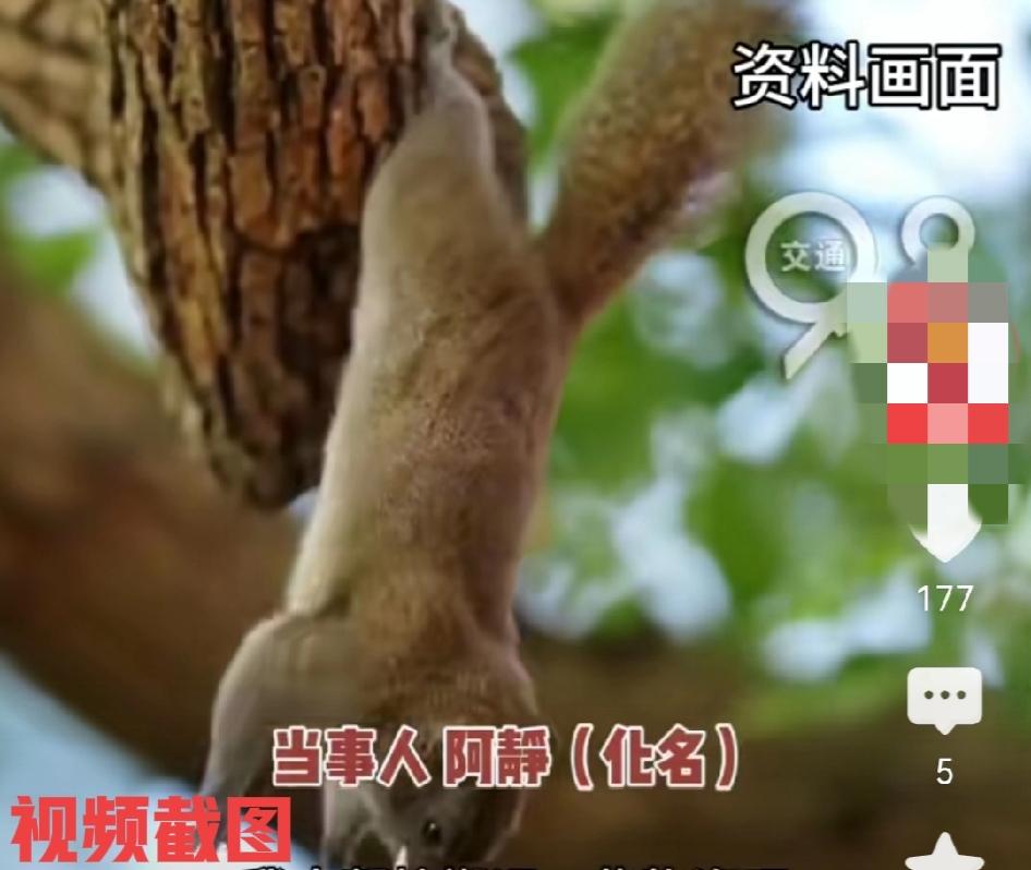 松鼠蹬了一女生的头,从容离去,毫不拖沓。 在杭州有女生走路时,无意中就被树上掉