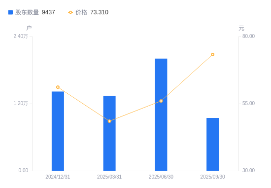 日期A股户数(户)流通A股户均持股数(股)户均持股市值(万元)2025-09-3094376926.6350.782025-06-30200532420.6013.552025-03-31133763628.9117.592024-12-31141573428.7220.962024-09-3086695665.0518.952024-06-3074096628.4719.042024-03-3179294444.6510.832023-12-3195823619.229.982023-09-30103512624.008.902023-06-30111292108.237.35