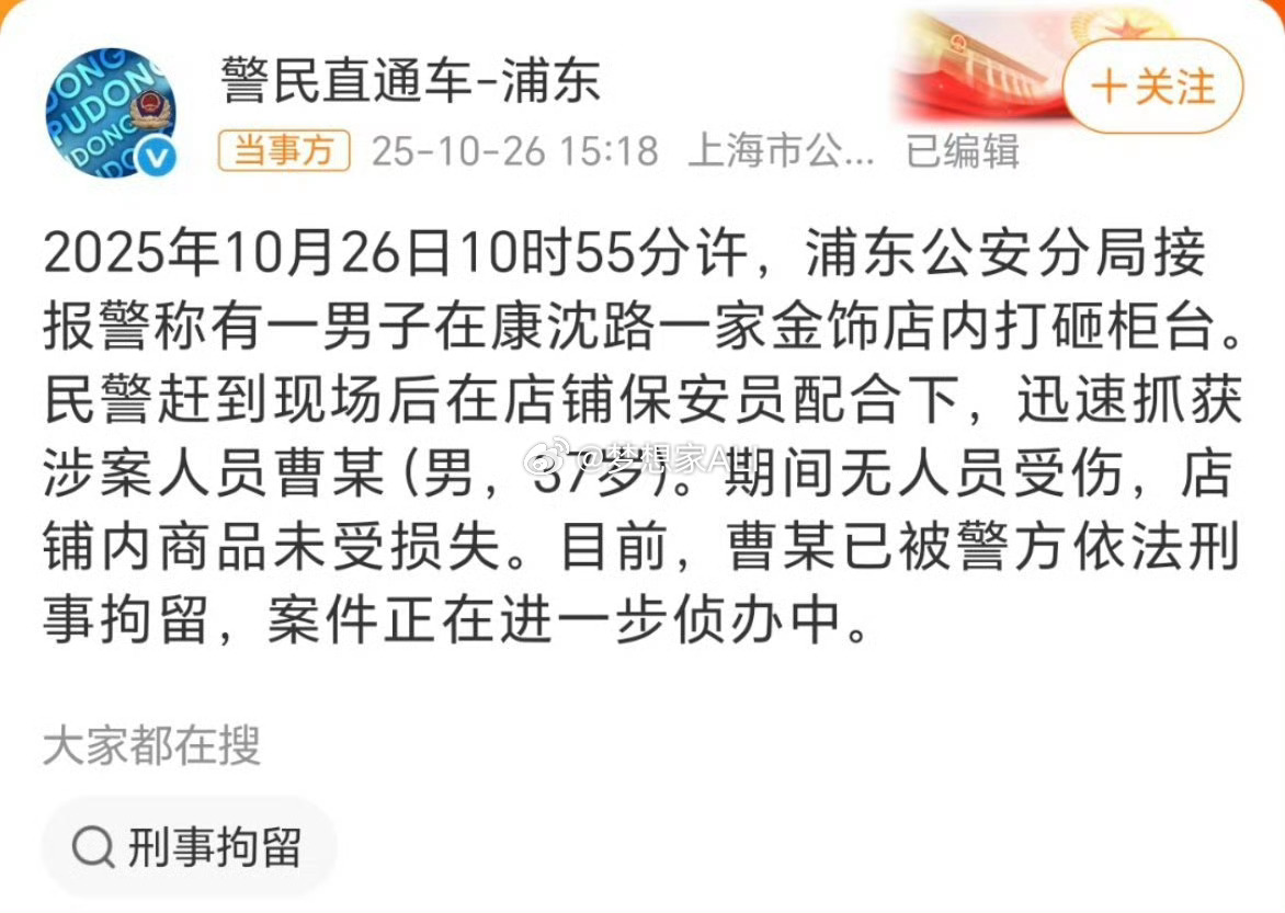 这是着急进去躲事儿吧‼️🤣 警方回应上海金店被抢