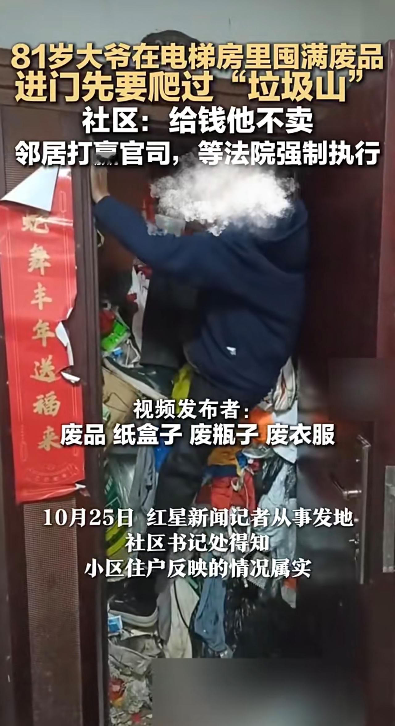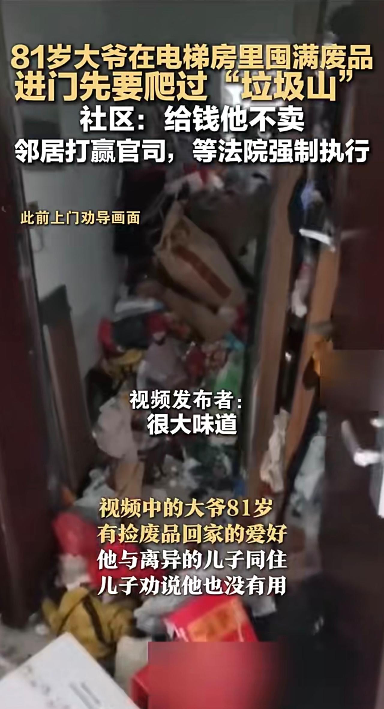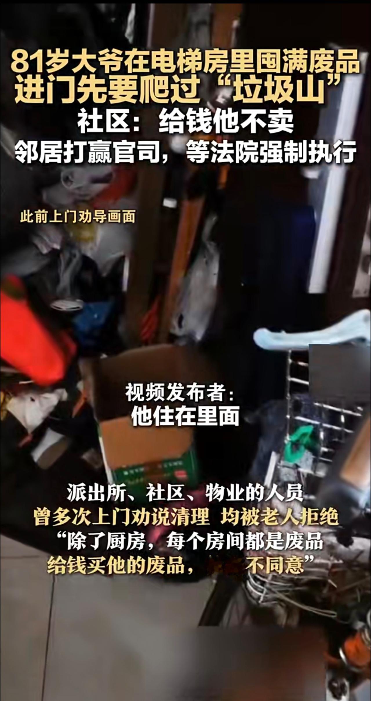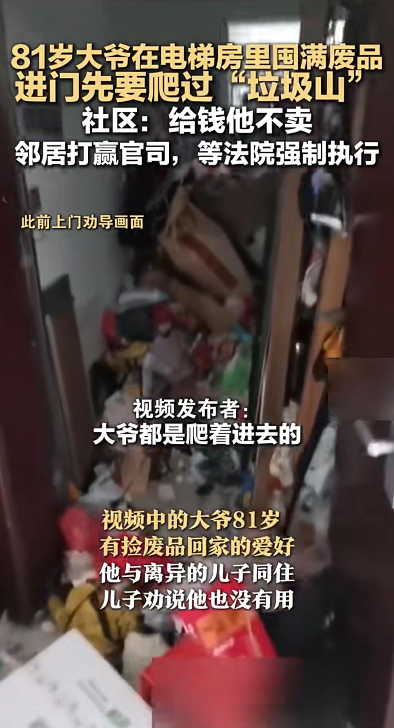 81岁大爷在电梯房里囤满废品 进门先要爬过“垃圾山 社区:给钱他不卖 邻居打赢官司,等法院强制执行
