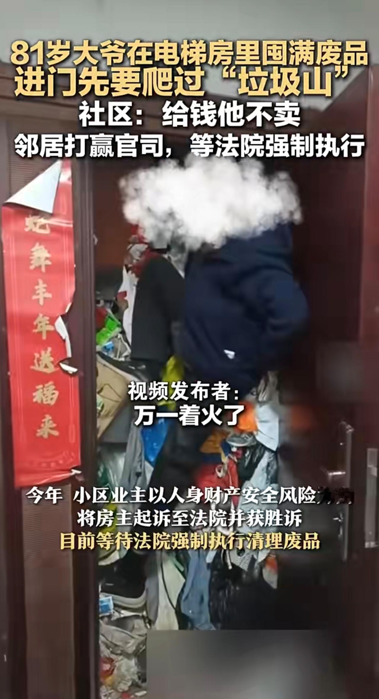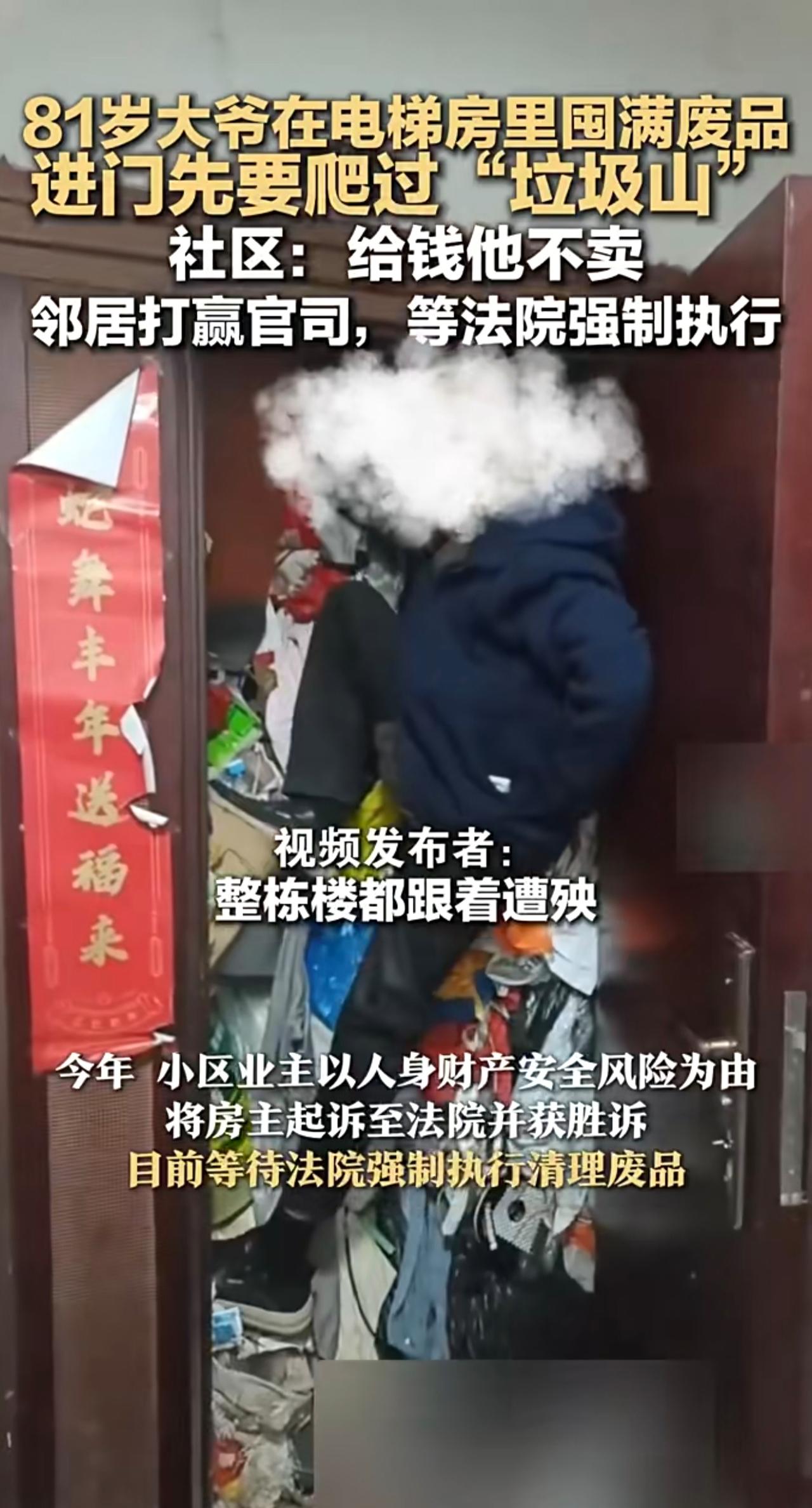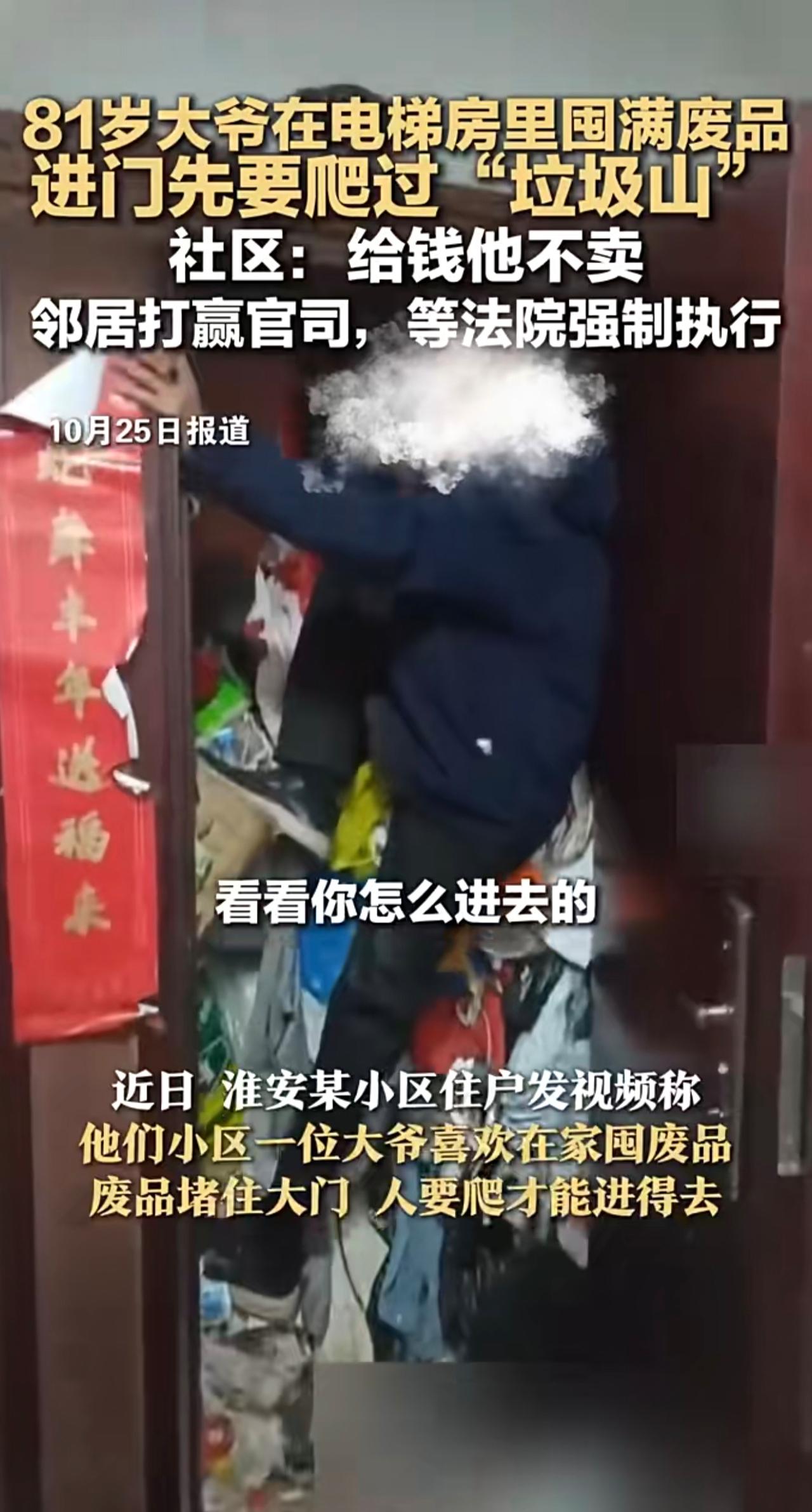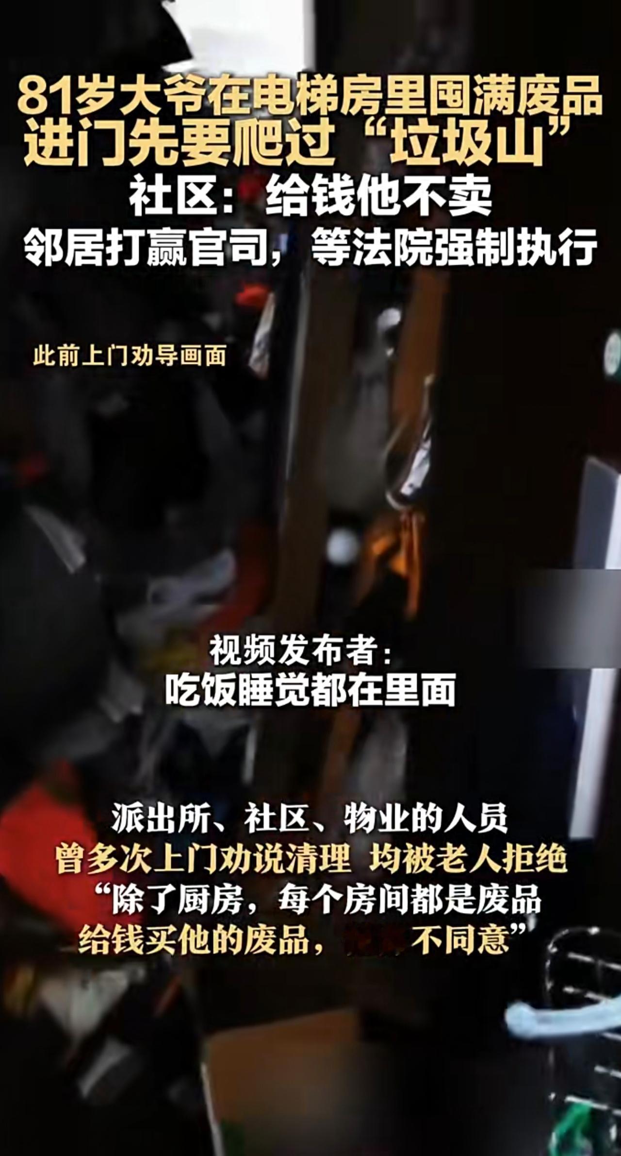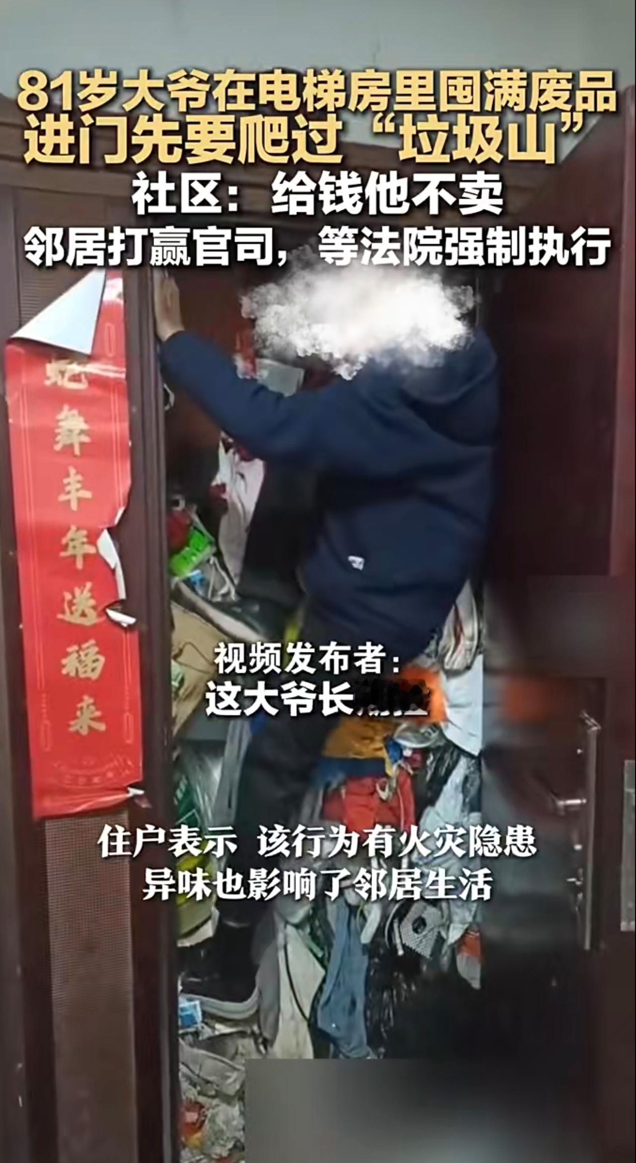 81岁大爷在电梯房里囤满废品 进门先要爬过“垃圾山 社区:给钱他不卖 邻居打赢官司,等法院强制执行