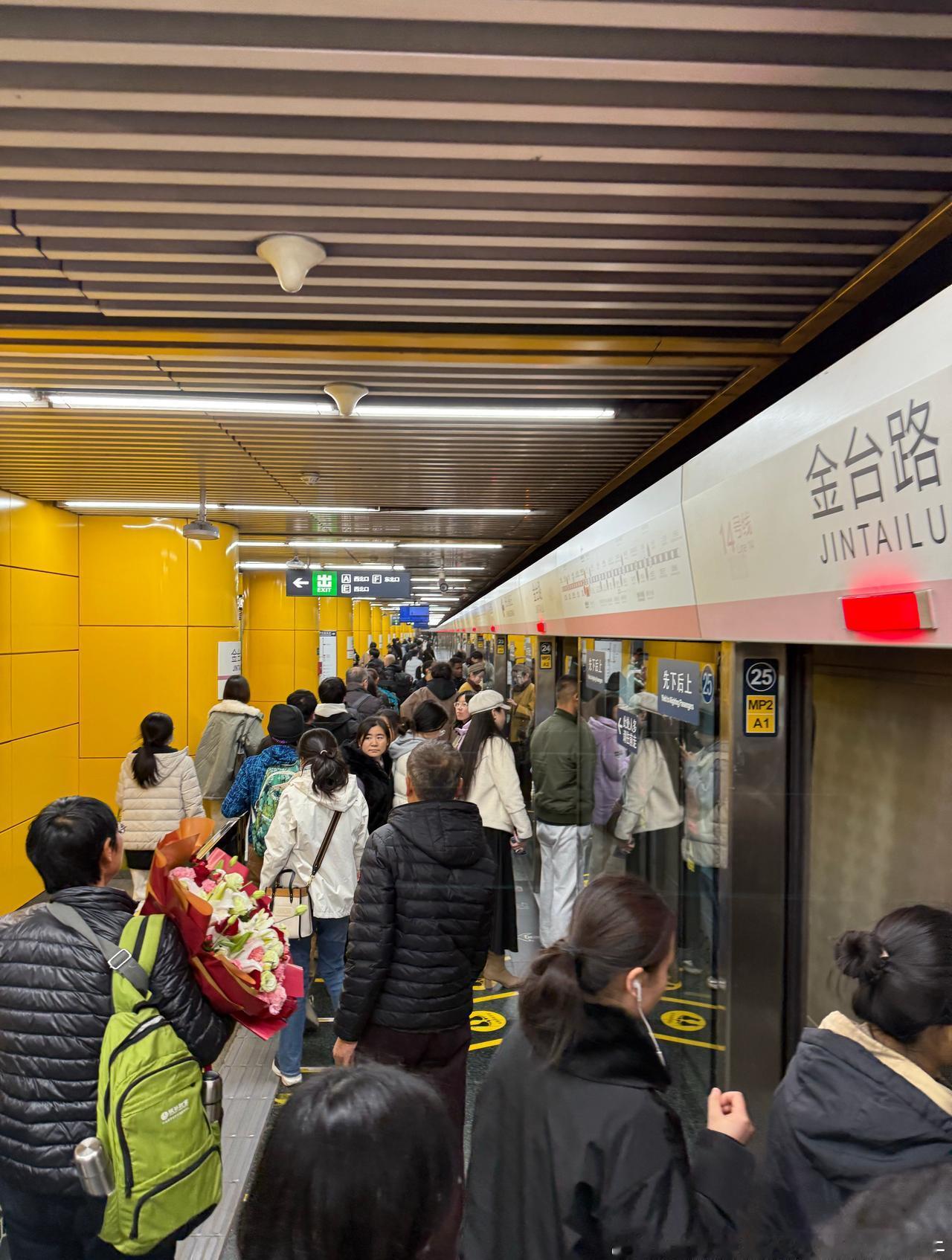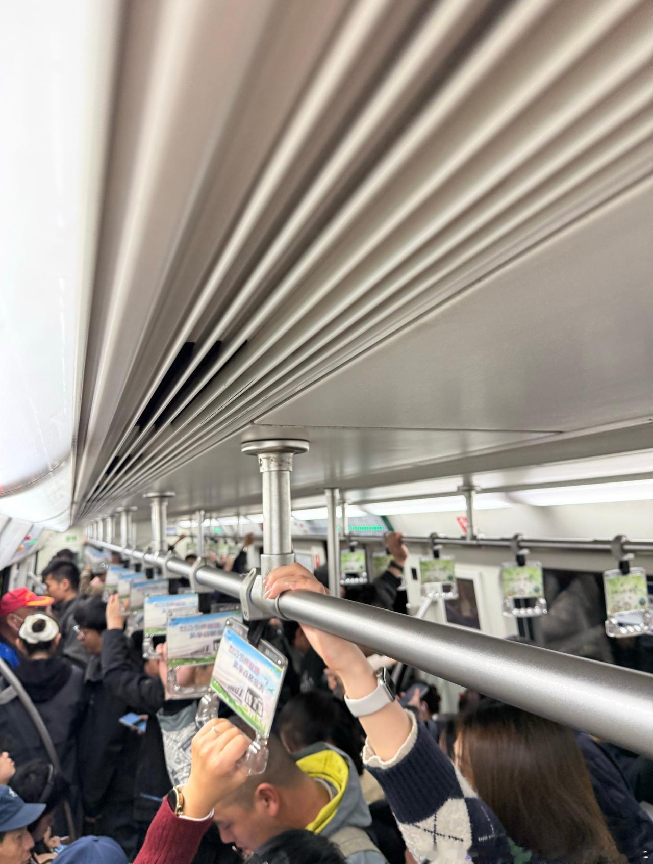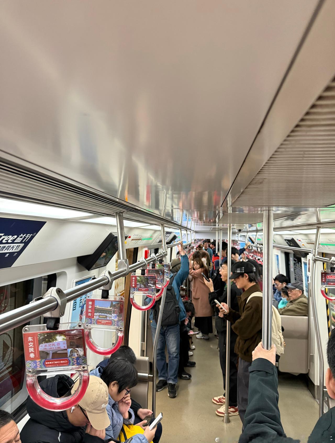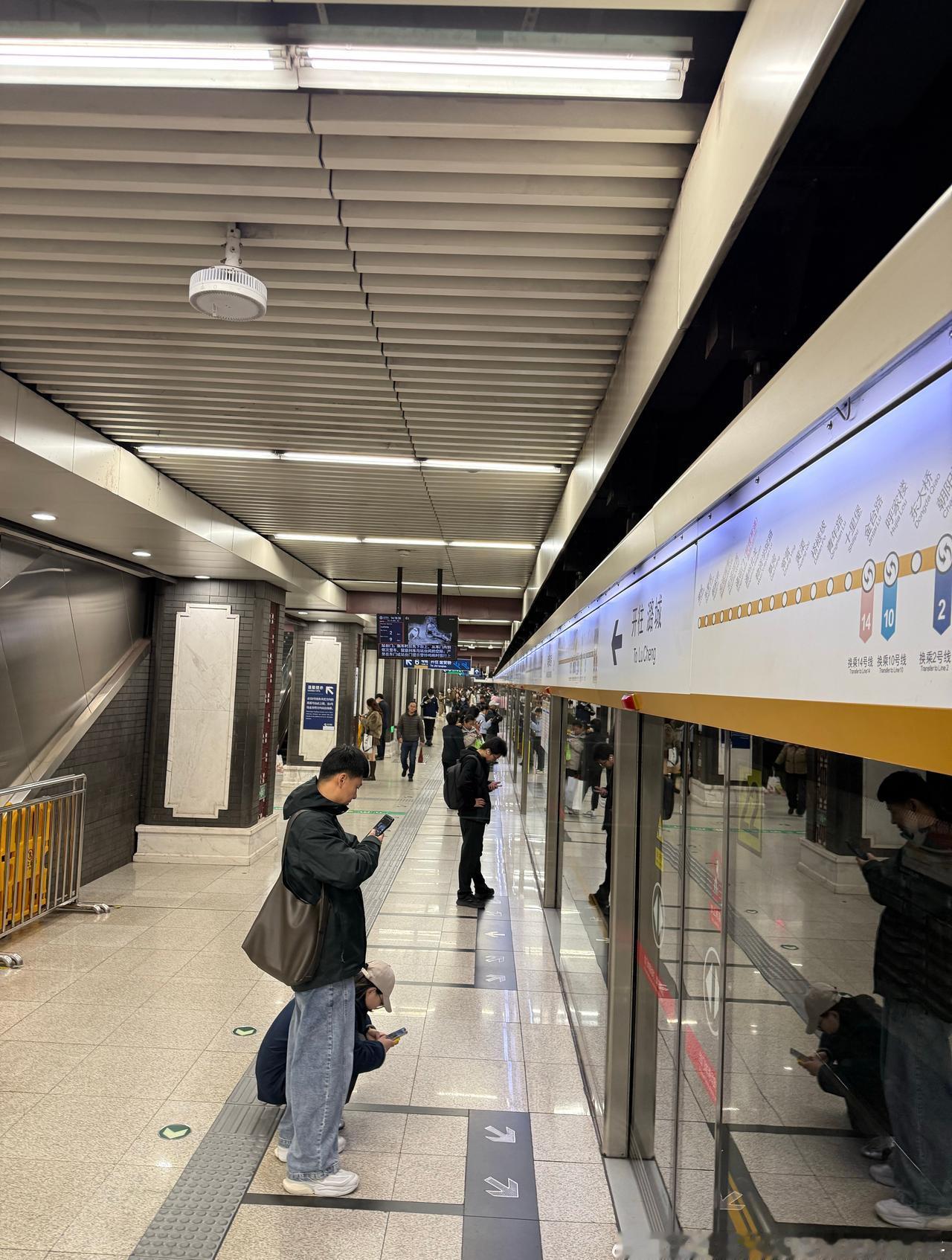 网友 @梅柚碱芥 分享北京地铁:2025年10月26日(周日)下午两点多,北京地铁8号线金鱼胡同,北上开往朱辛庄方向站台和车内客流,本时段间隔约为8分钟,拥挤不堪(图1-2),南锣鼓巷换乘6号线西行开往潞城方向(间隔约为7分钟,图3-5),金台路换乘14号线前往朝阳公园(间隔约为7分钟,图6-7),朝阳公园景色甚美(图8-9)。 网友感觉北京地铁周末间隔偏大,尤其是8号线途径前门、王府井、南锣鼓巷等热门地带,游客非常多,周末应当适当压缩间隔。