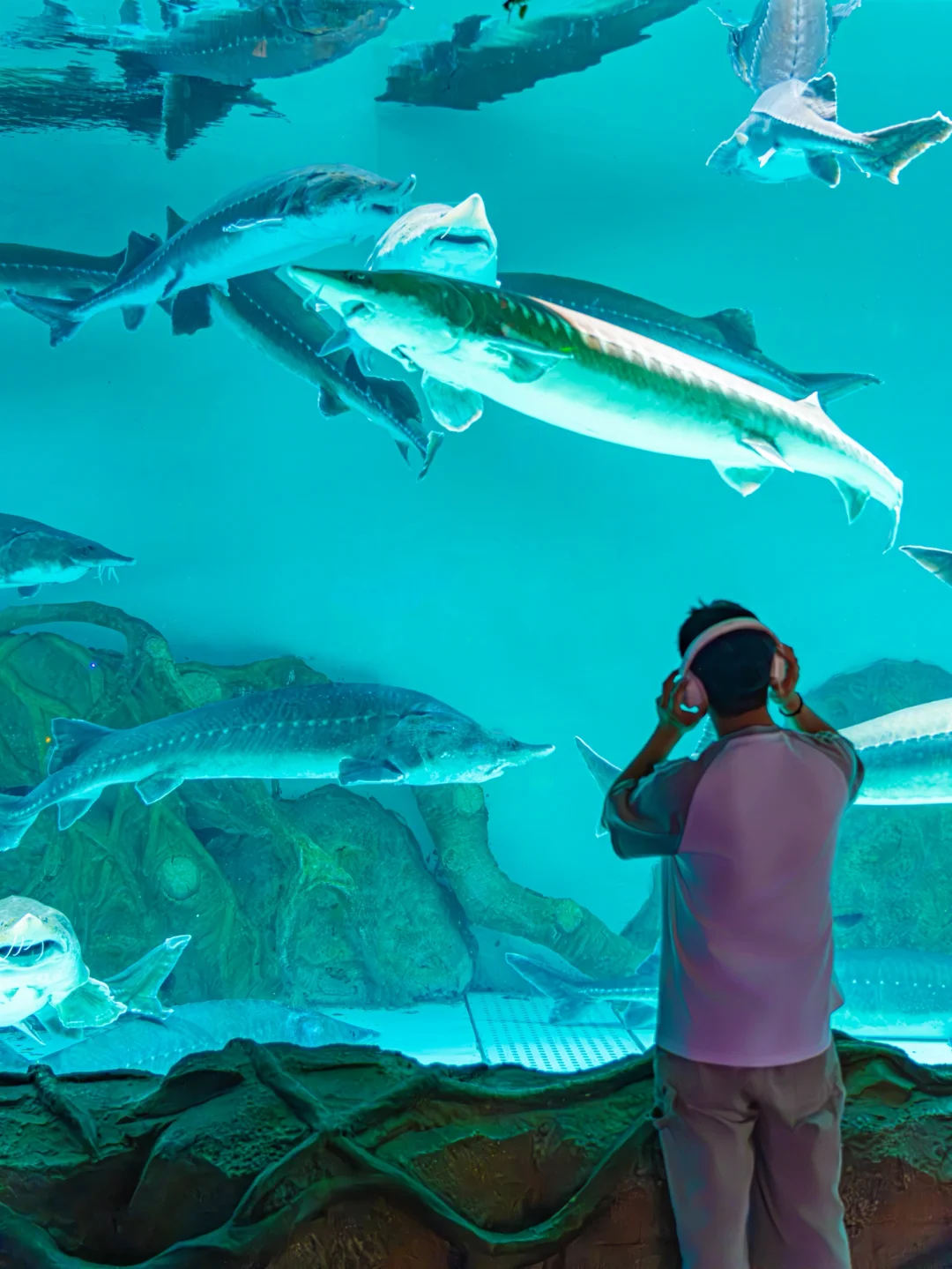 一共3⃣条海底隧道,抬头就能看到各种海洋动物在头顶游过,这里也是宝爸宝妈必打卡的地方,一坐就是一下午,根本看不过来。