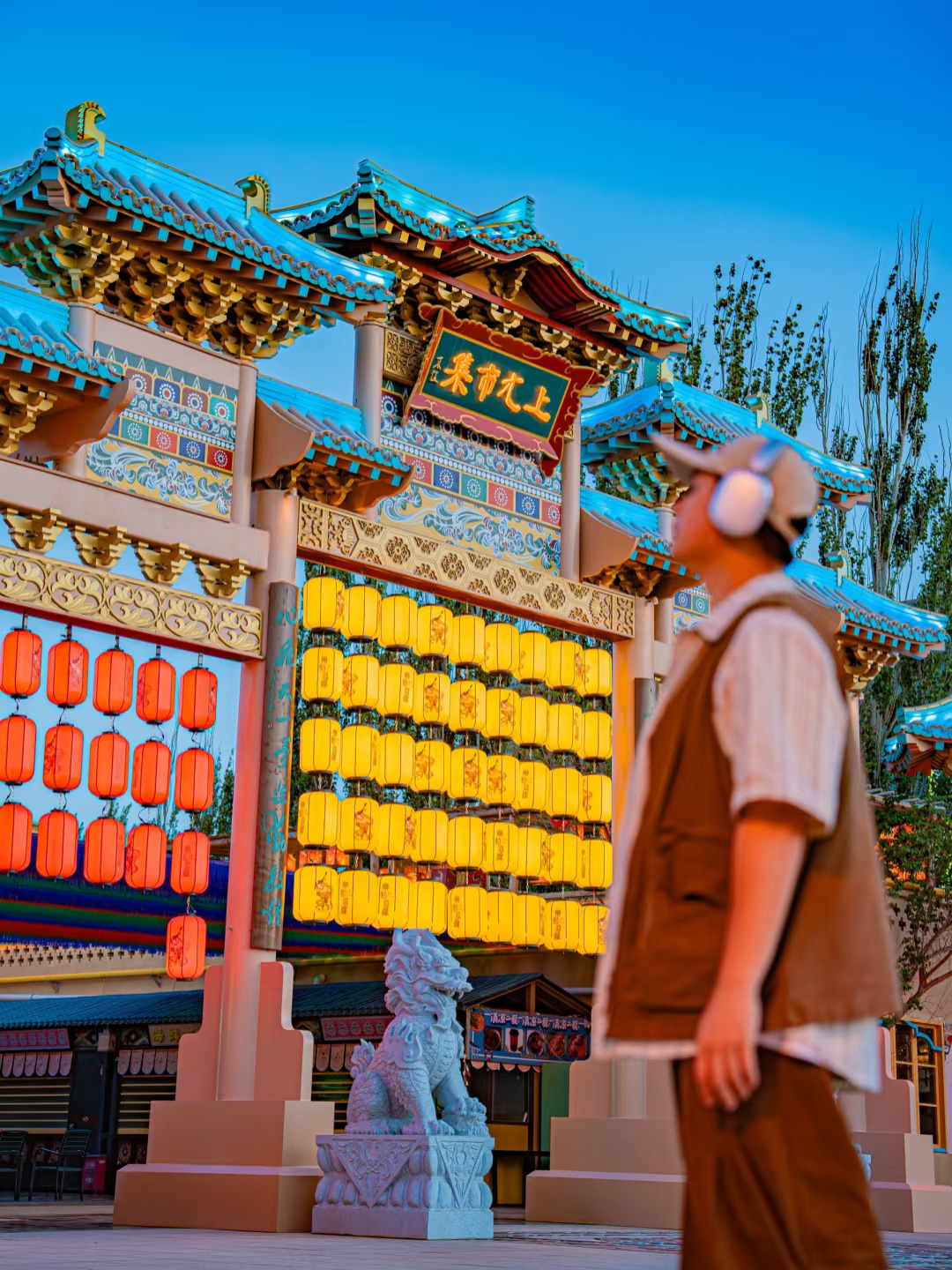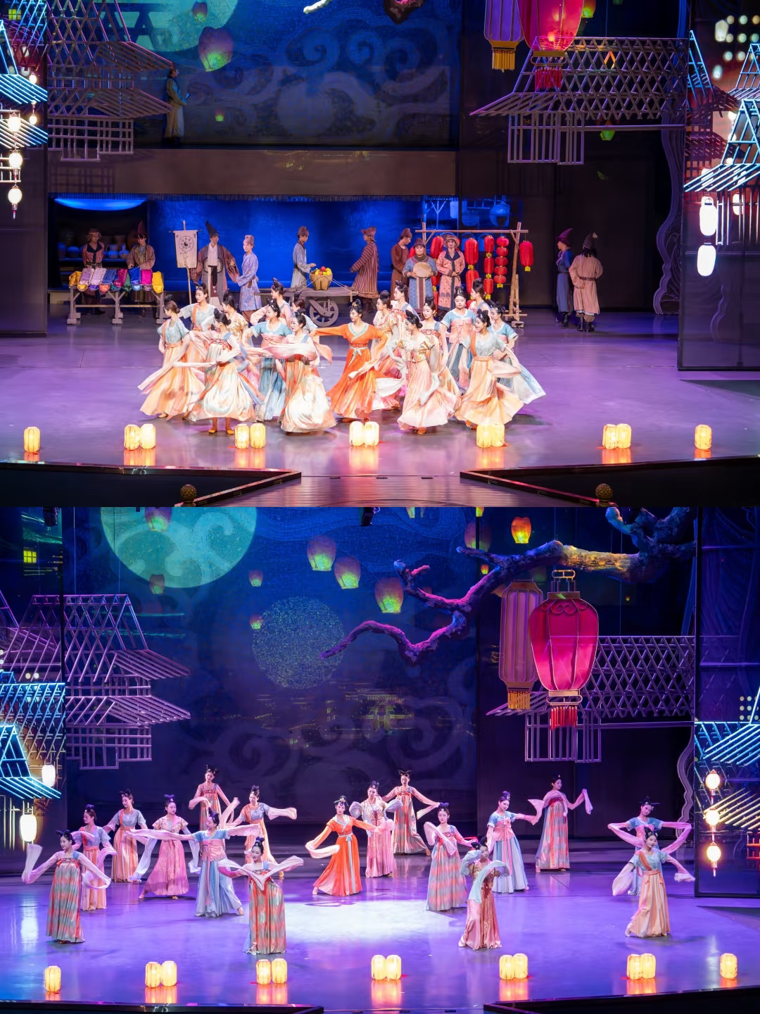 演出结束后,市集上的风动藻井和燃灯轮交相辉映,将莫高窟壁画中的奇幻场景完美复刻,还可以品尝到丝路沿线的特色小吃,看完剧场可以狠狠饱餐一顿.