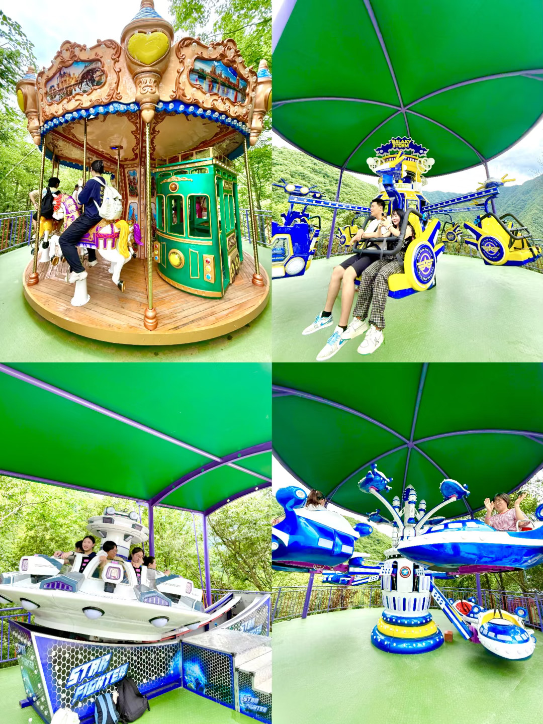 桐庐这个宝藏城市 竟然还藏了一个超好玩的山野乐园!! 在这里我见证了世界记录认证的漂流 而且还有真人山野赛车 更有藏在山里的游乐园 简直是暑假游玩圣地 已经N刷的我下面的游玩攻略 这个夏天和我一起去天子地山野乐园避个暑~ . 🌆景区名称:天子地山野乐园 📍景区地址:浙江省杭州市桐庐县罗山村 🚘出行方式:建议自驾,杭州出发2小时左右到达 🈺游玩时间:7:30-18:00,15:30停止入园 . 🗺游玩路线 魔毯上山—紫绫纤手—云梯天桥—天空之镜—极速飞翔—天际摆渡—时空跳跃—星际飞碟—神舟飞船—空中木马—幻石龙宫—雪豹飞车—高空漂流—恐龙谷 . 🌟游玩打卡点: ✅紫龙峡高空漂流 全长3.8km,落差高达500米,全程十几分钟,期间好几个大转弯,感觉就和过山车一样刺激,而且全程在山谷里漂流,体验感完全不一样。 ✅天际摆渡 500多米的高空,180度的来回摆动,感觉自己就好像肥仔山林里面一样,N刷了好几遍,根本玩不够。 ✅幻石龙宫 千年前形成的地下溶洞!夏天避暑圣地,站在门口就能感受到18°的凉气,而且溶洞千奇百怪,在不同灯光的照射下展现不同姿态,非常新奇。 ✅雪豹飞车: 现实版的山野赛车,太刺激了,开启和好朋友一起竞速,好几个大弯道,是时候展示技术了。 ✅紫绫纤手 如同丝带一般围绕在山谷之中,一双大手托起,非常震撼的场面,可以眺望整个山谷 .