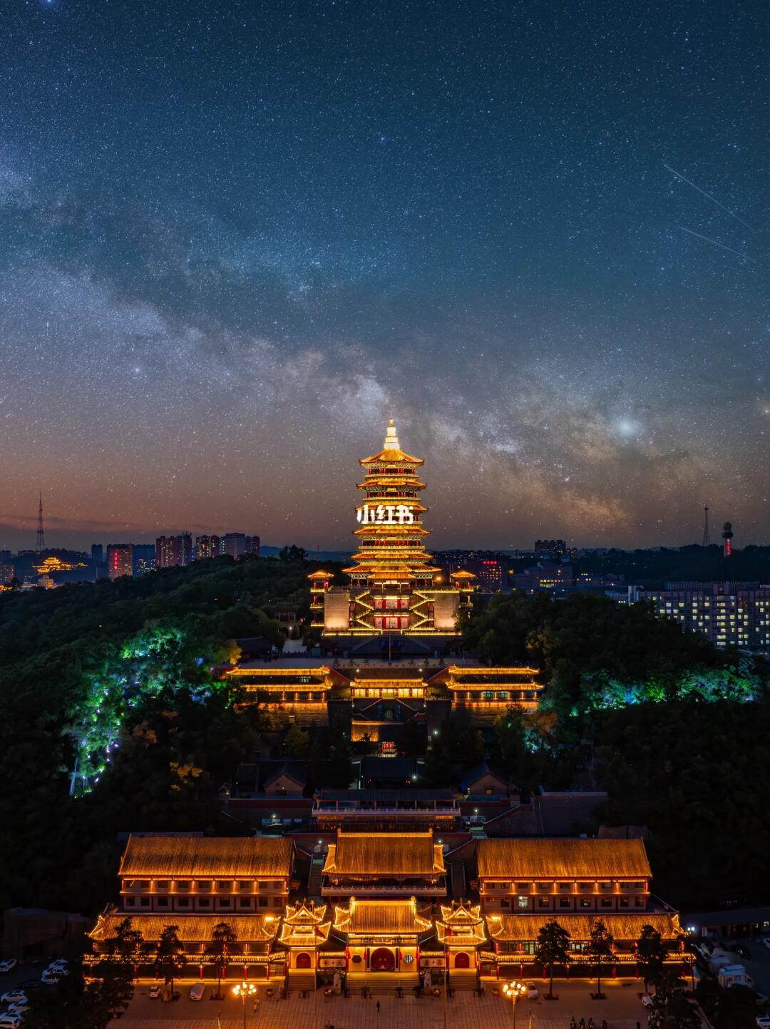 2️⃣魁星楼:道观依山而建,游览为一直向上走,走到最上面就是魁星楼,视野很好,后面连着龙山公园,可以一起游玩,晚上还会亮灯,拍照片也是非常好看。