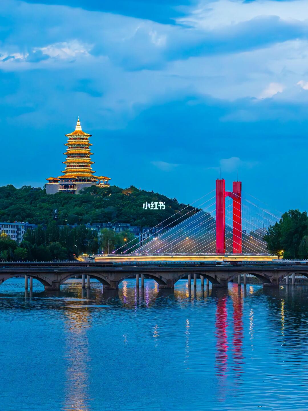 3️⃣月亮广场:很多当地人都会在这边散步的广场,旁边就是东辽河,到了晚上还有免费的琵琶表演,这里也能拍到魁星楼亮灯河斜拉桥,晚上看夜景河看表演的不二之选。