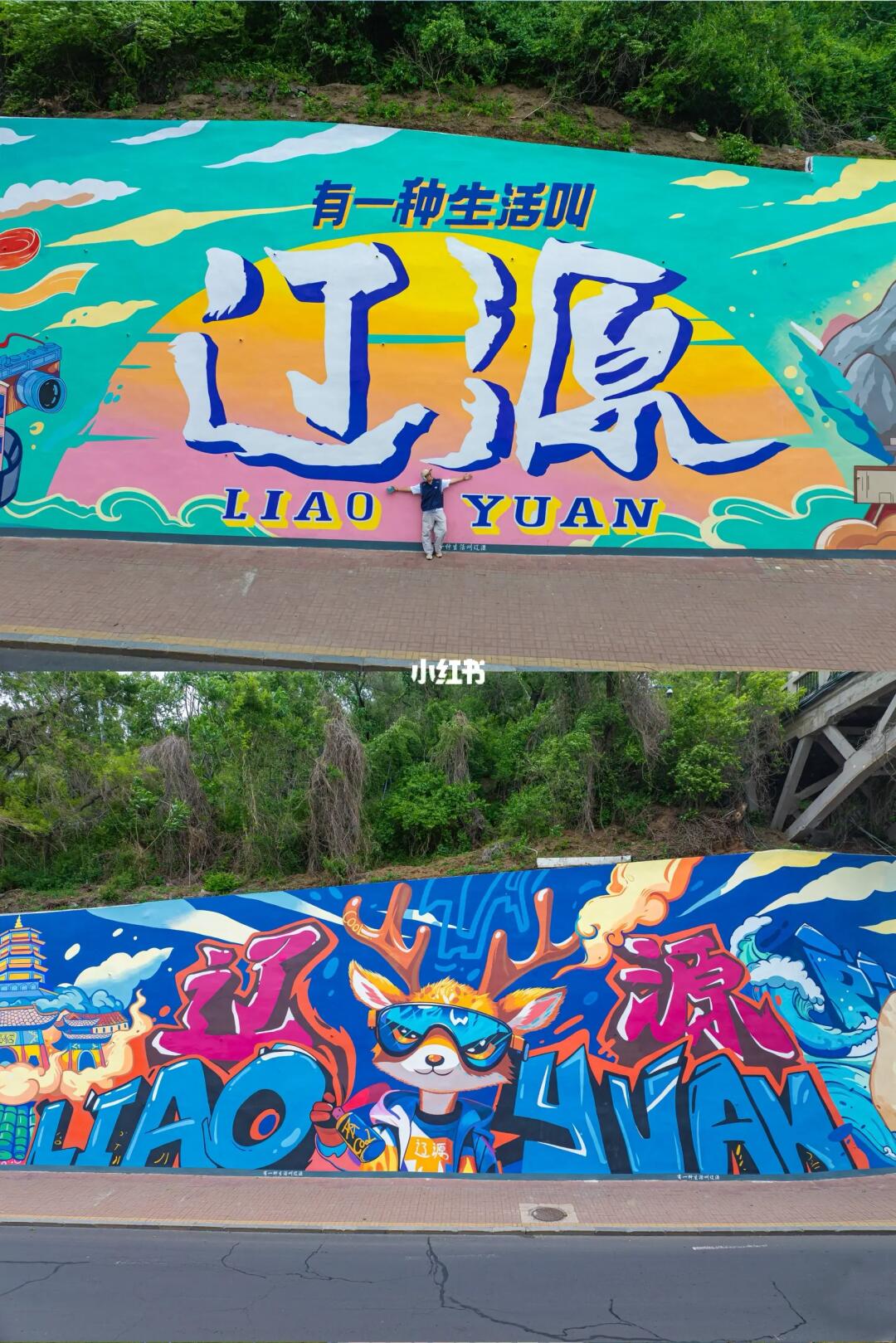 1️⃣涂鸦墙:辽源新地标打卡点,通过鲜艳的色彩展示着辽源人的热情好客,而且还有大大的辽源两个字,非常适合打卡拍照片