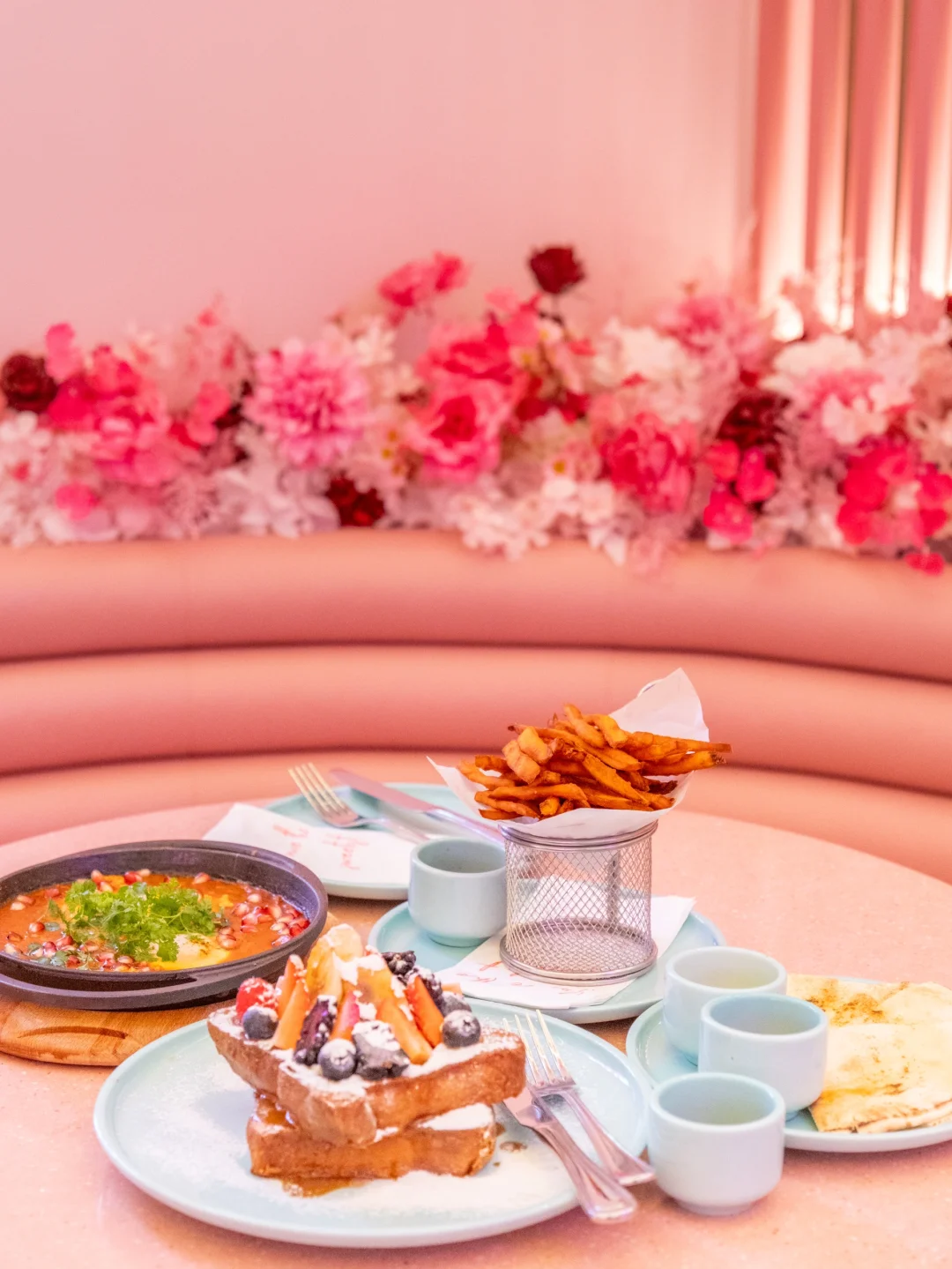 没有女孩子不喜欢这粉色系列的装修风格,到处都弥漫时尚的气息,主打健康美食和无酒精鸡尾酒饮品。