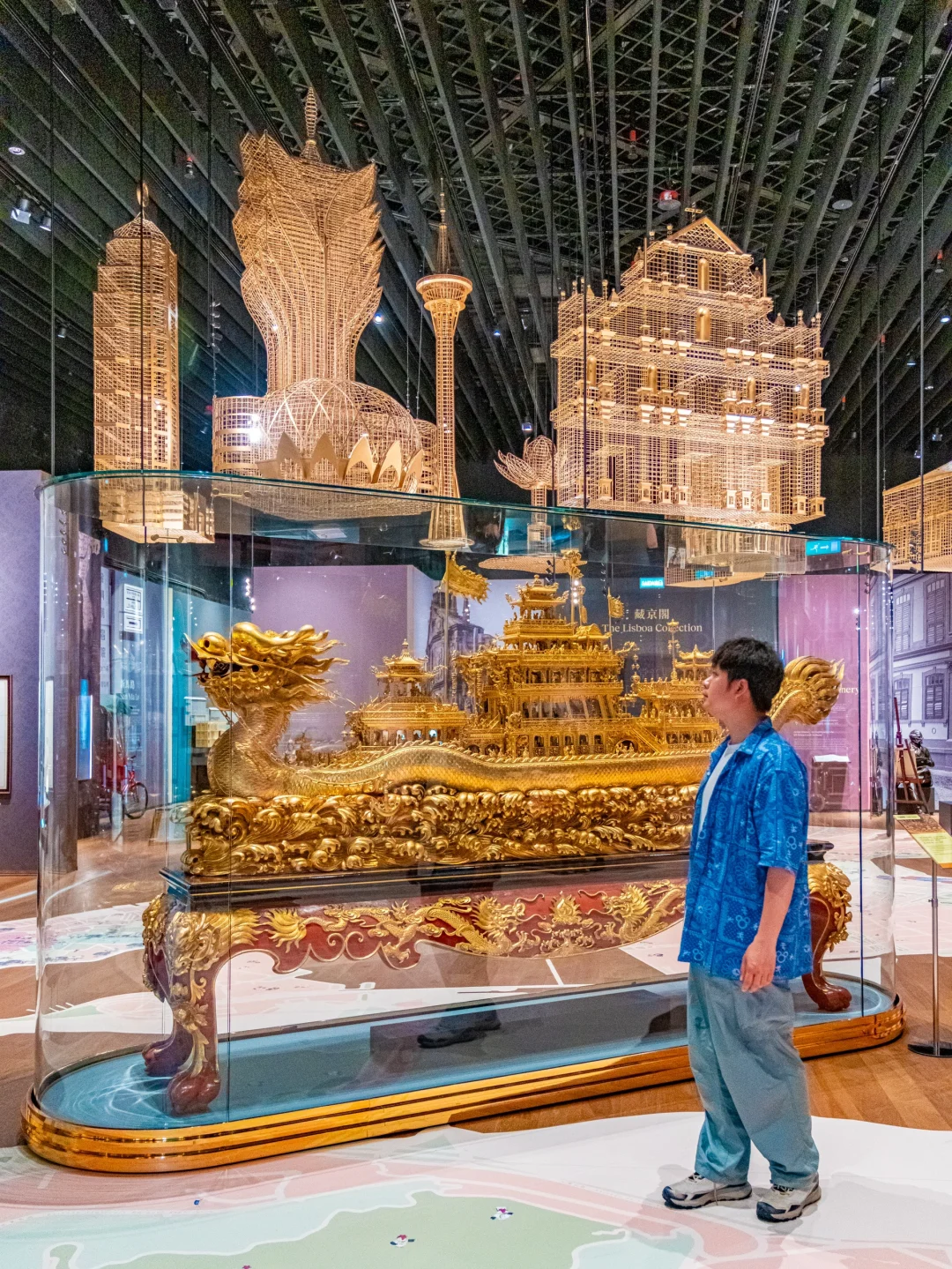 运用数字技术和展览结合,为我们解开了澳门著名地表背后的故事例如在《伯多禄五世剧院》互动展位,可以通过数码装置互动,参与剧场演员的试镜挑战,更深入了解澳门地区特有的语言“活化石”澳门土生土语特展展馆重磅展示了清朝宫廷里的珍稀瑰宝,其中一件藏品,是经过多年修复后首次面众的龙纹宝座,结合了戗金和填漆2种复杂工艺,非常珍贵而罕见。