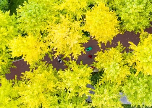 10月25日,吉首市乾州街道银杏渐黄,吸引众多市民游客前来观赏。金黄的银杏叶与秋日暖阳相映成趣,为城市增添了一抹亮丽的色彩,展现迷人的秋日风光。