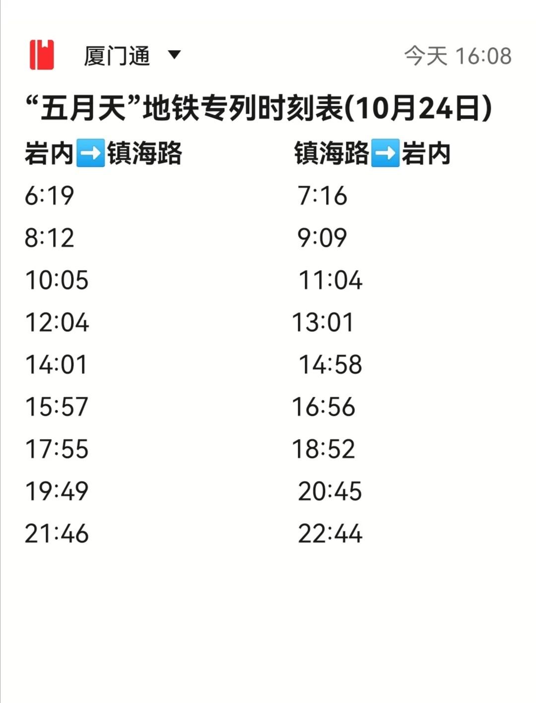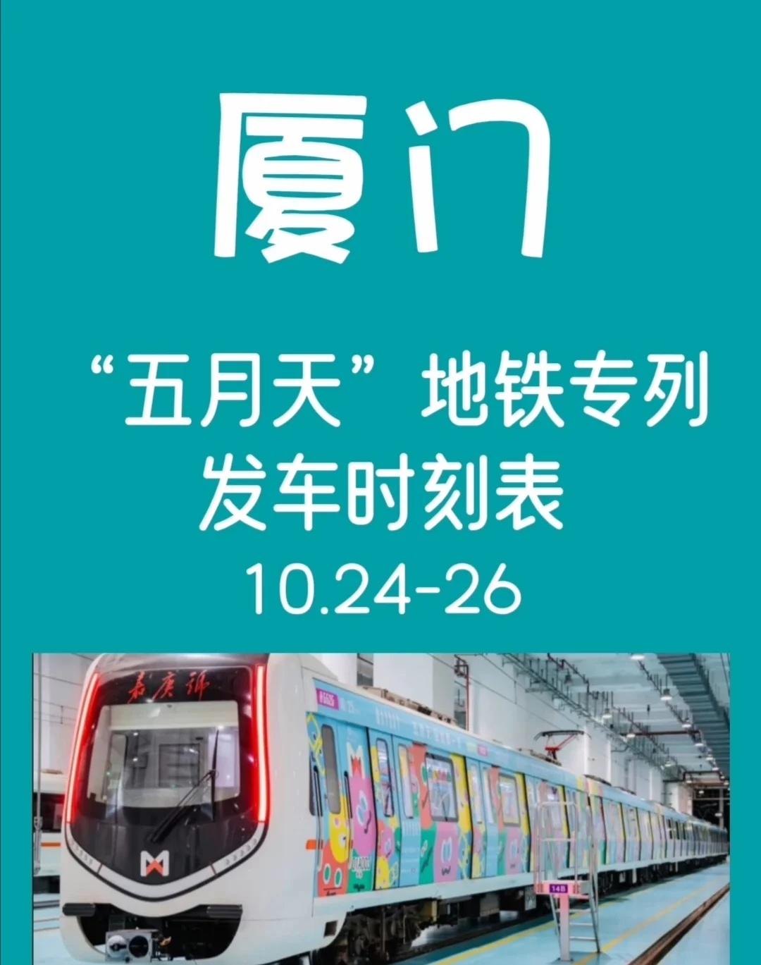 厦门地铁五月天专列‼️10.24-26发车时刻表 厦门地铁“五月天”专列 🕰1
